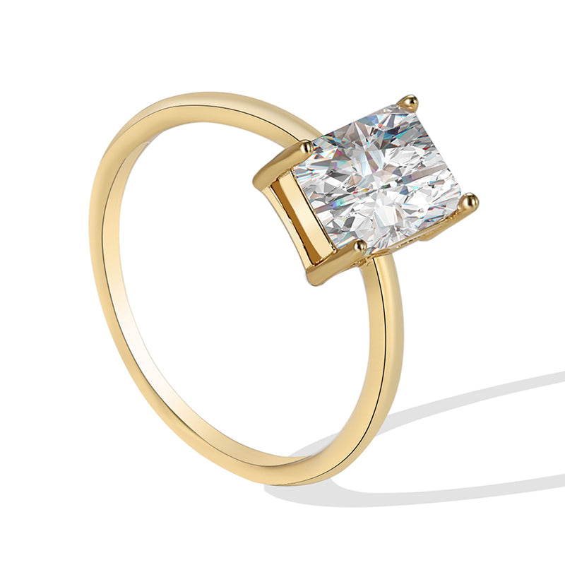 18K Gold Plated Gold Square Cubic Zirconia Copper Base Ring