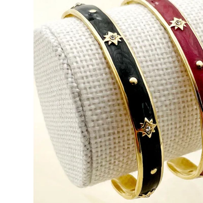 14K Gold Plated Black Star of Bethlehem Cuff Bracelet