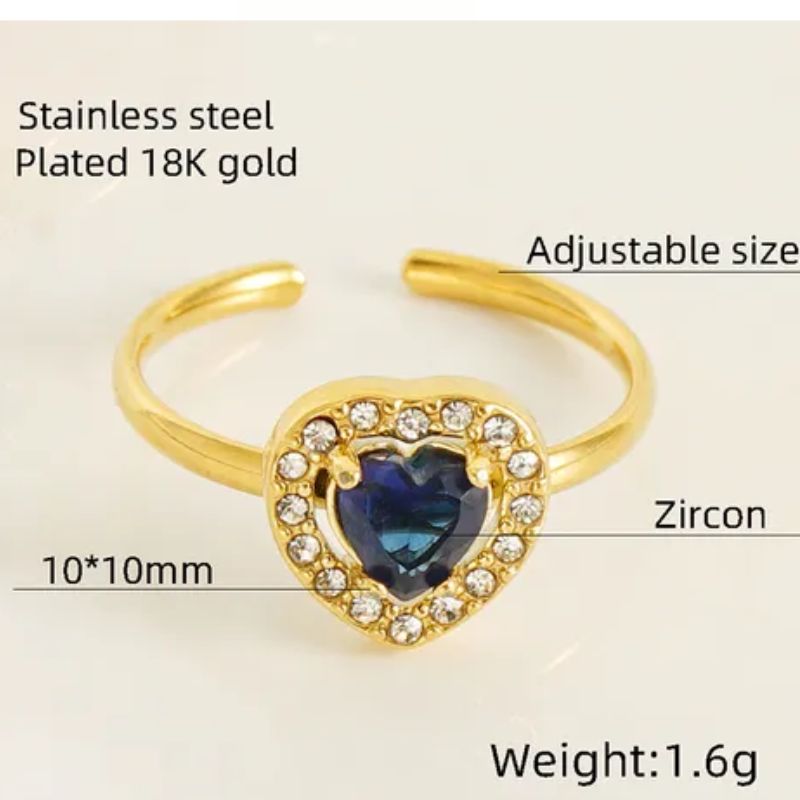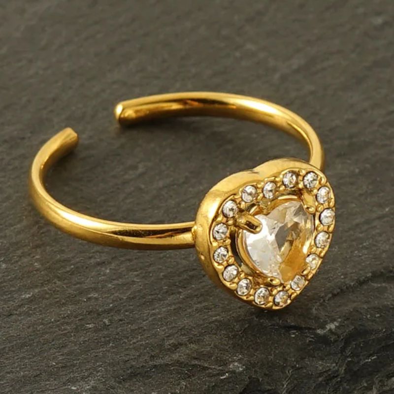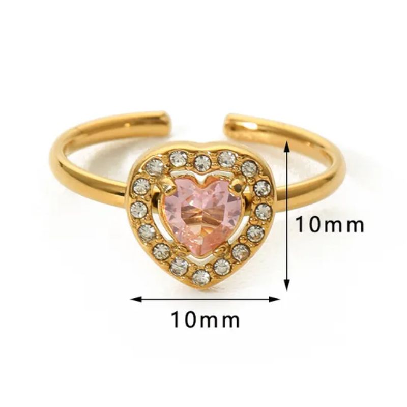 18K Gold Plated Heart Ring | 5 Colors - White / Adjustable Size is backordered and will ship as soon as it is back in stock.