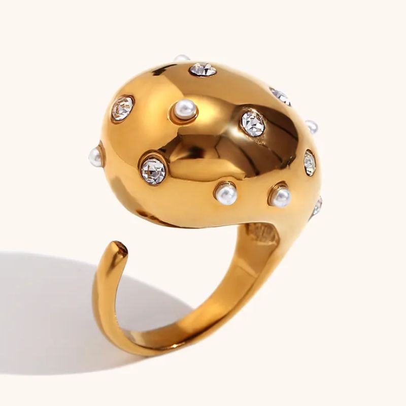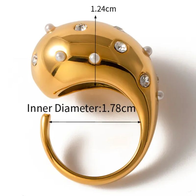 18K Gold Plated Puffy Top Ring with Rhinestones - Gold is backordered and will ship as soon as it is back in stock.