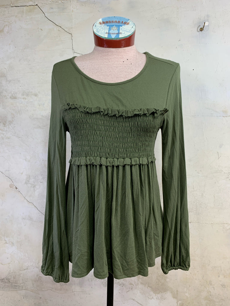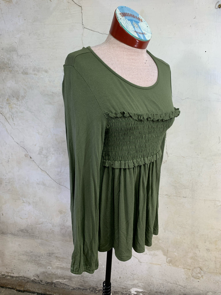 Size M COVER STITCHED Green Long Sleeve Shirt