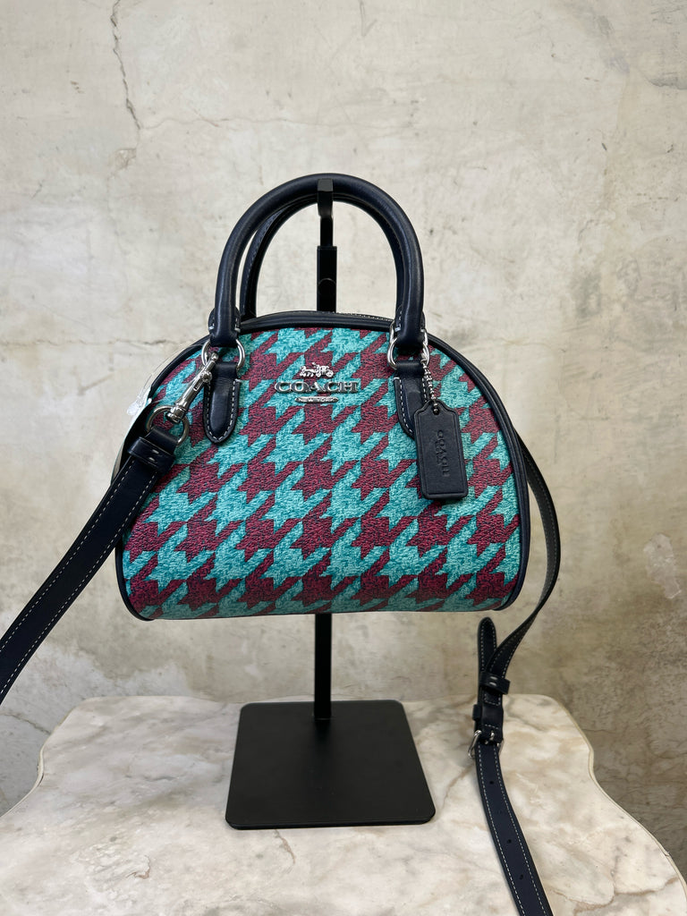 COACH BLUE/PINK Houndstooth Sydney Satchel Purse