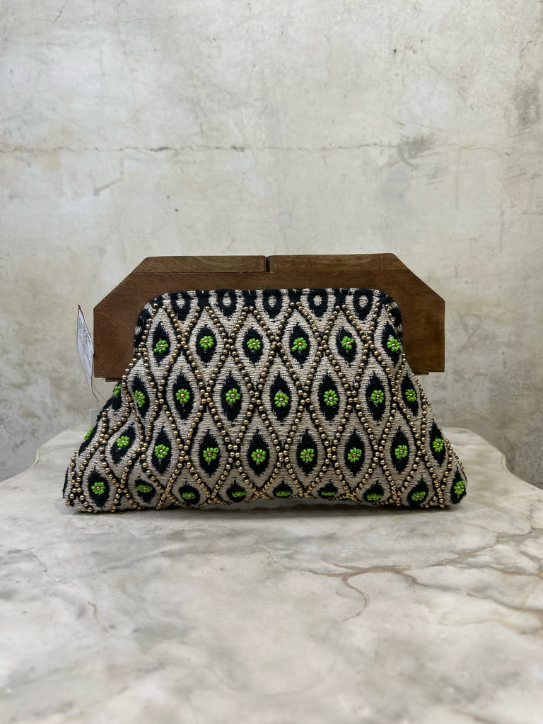 FRANCESCAS CREAM/MULTI WOODEN/BEADED New with Tags Clutch
