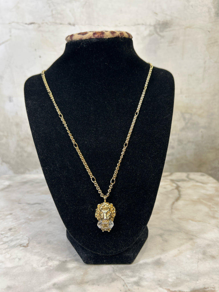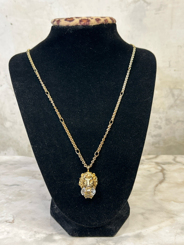 GUCCI GOLD + CRYSTAL LION HEAD Necklace
