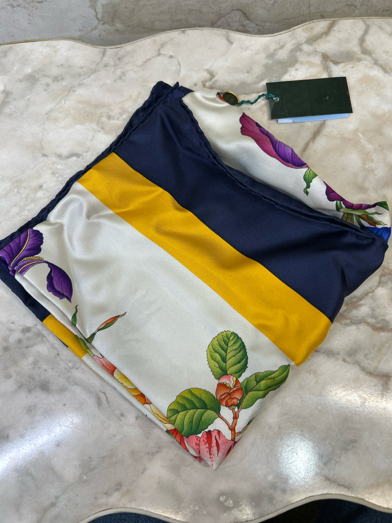GUCCI CREAM/MULTI 100% SILK NEW IN BOX Vintage Skinny + Fashion Scarf