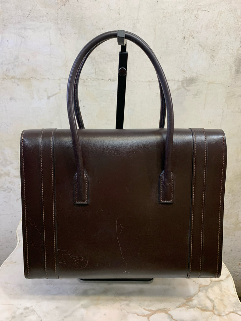 HERMES Brown DRAG BOX CALF LEATHER Vintage Purse
