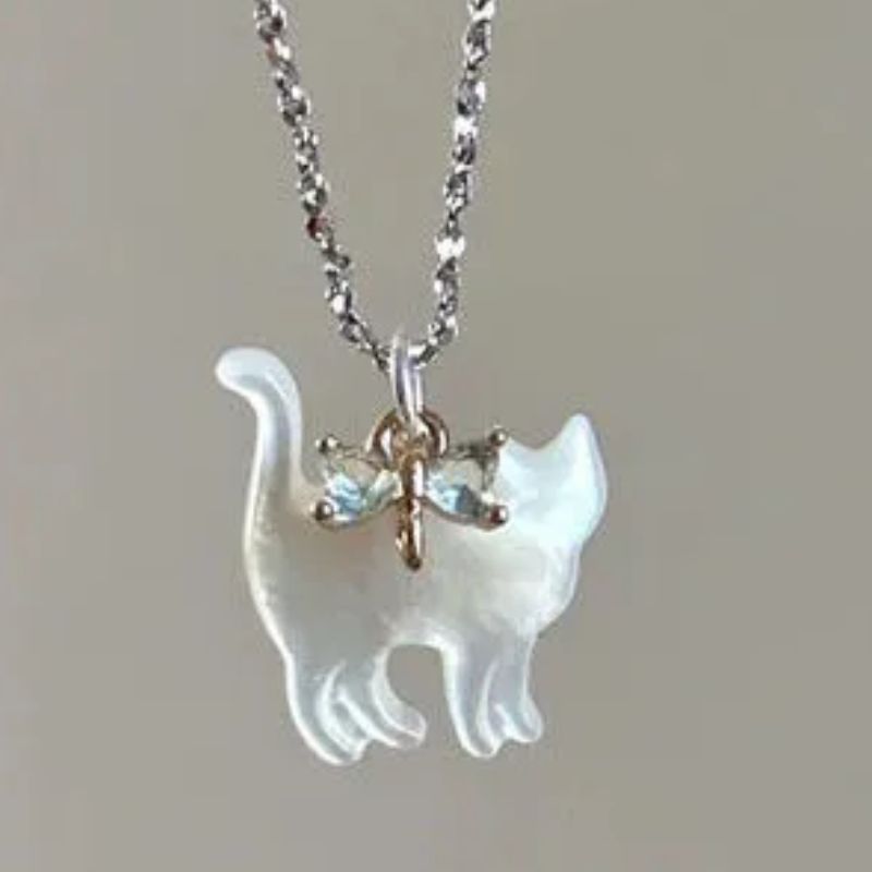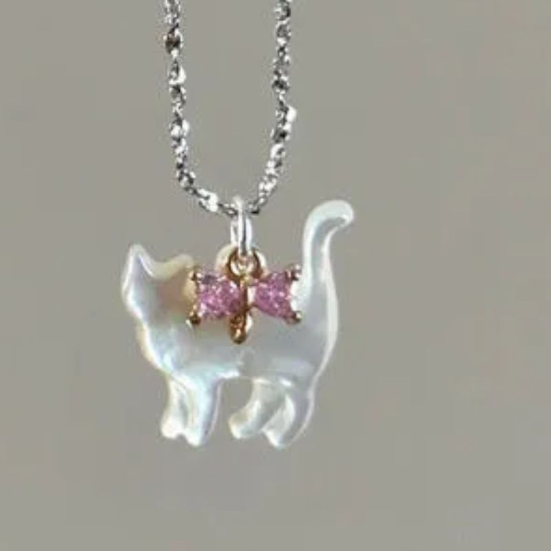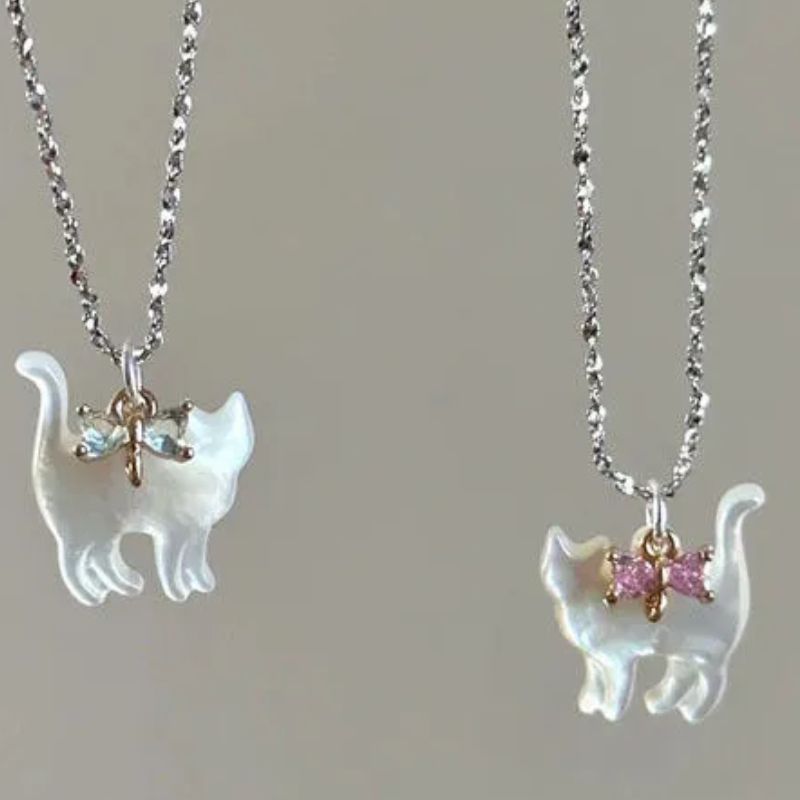 Cat with Bow Tie Necklace | 2 Styles - Pink is backordered and will ship as soon as it is back in stock.