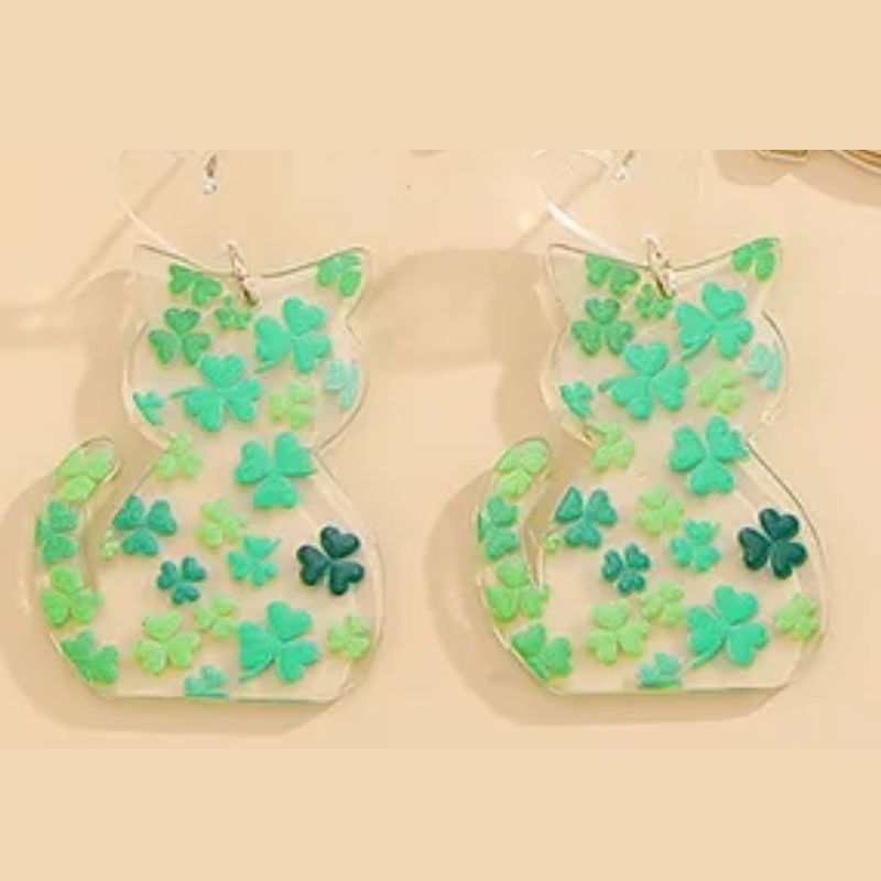 St Patrick's Day Shamrock Cat Earrings - Green is backordered and will ship as soon as it is back in stock.