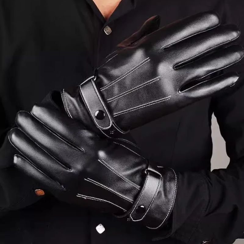 Black Faux Leather Gloves - Black
