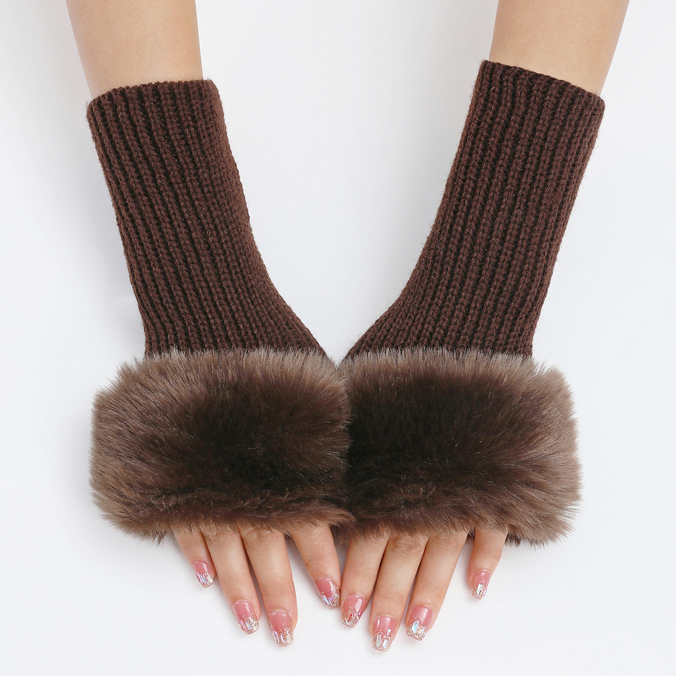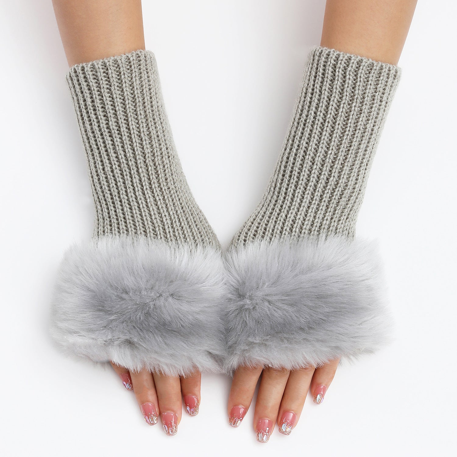 Faux Fur Fingerless Long Knit Gloves - LIGHT GREY is backordered and will ship as soon as it is back in stock.
