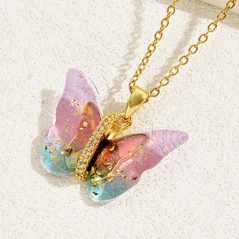 18K Gold Plated Butterfly Necklace | 2 Colors! - Blue is backordered and will ship as soon as it is back in stock.