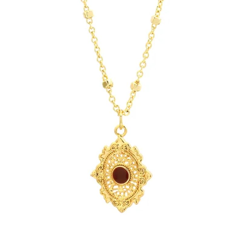 18K Gold Plated Scroll Necklace | Red or White - White is backordered and will ship as soon as it is back in stock.