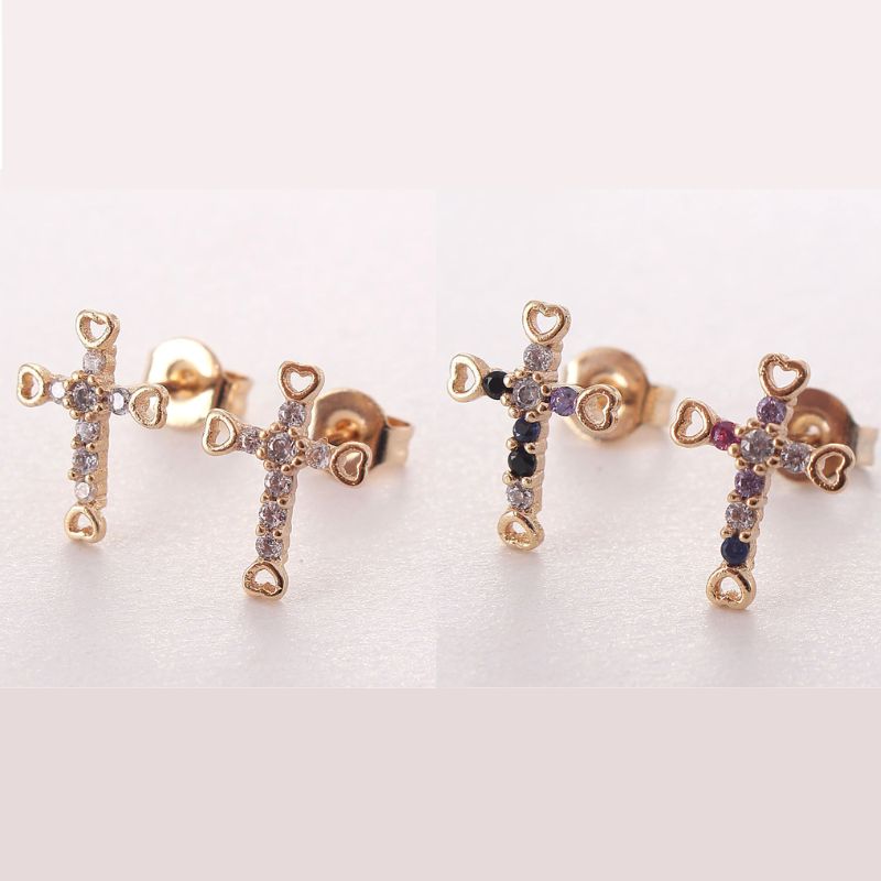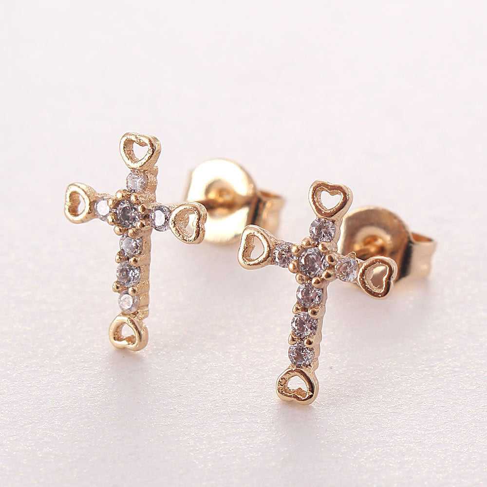 18K Gold Plated Rhinestone Cross Earrings