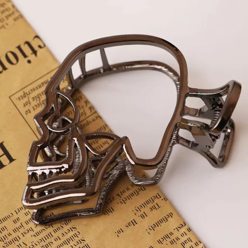 Halloween Black Skull Outline Side Profile Hair