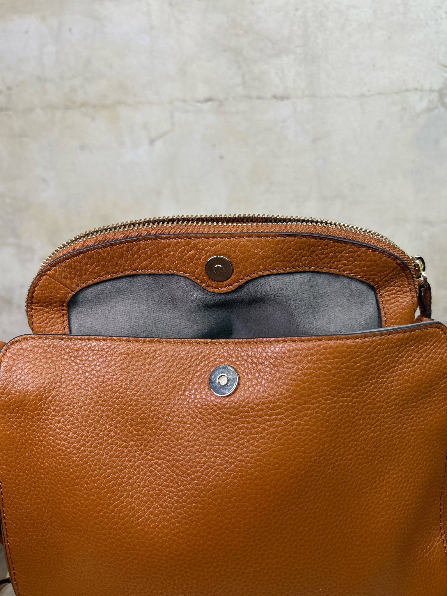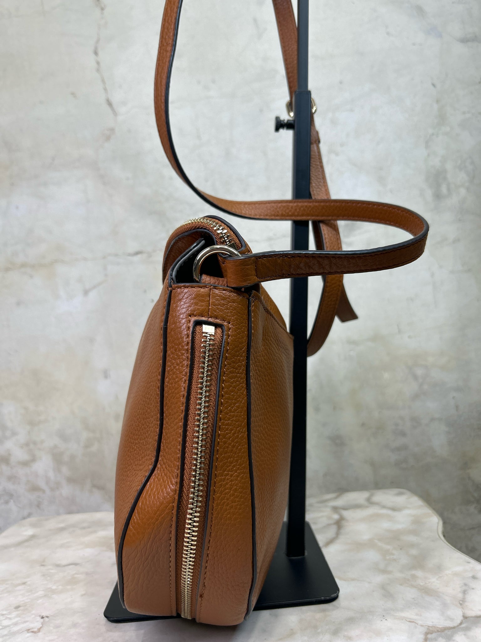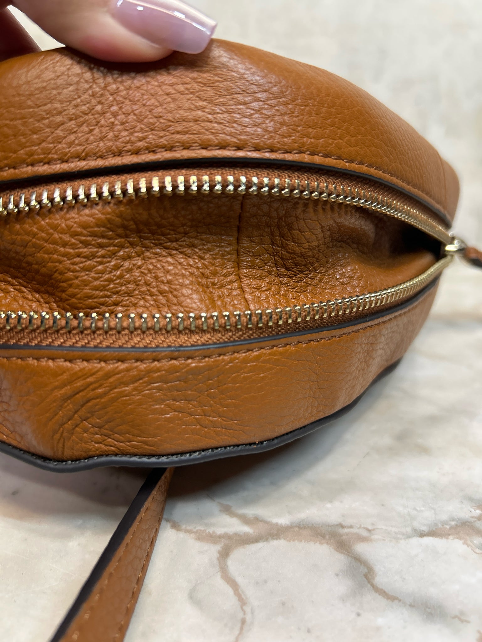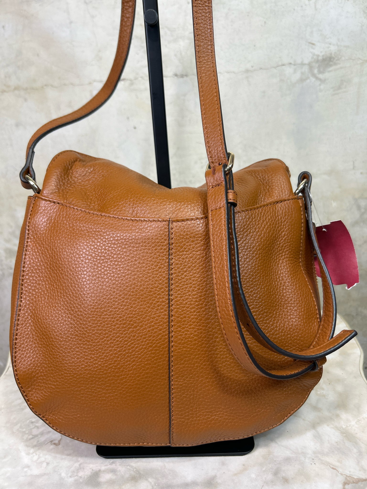 VINCE CAMUTO Tan Kenzy Crossbody PEBBLED LEATHER Purse - Tan is backordered and will ship as soon as it is back in stock.