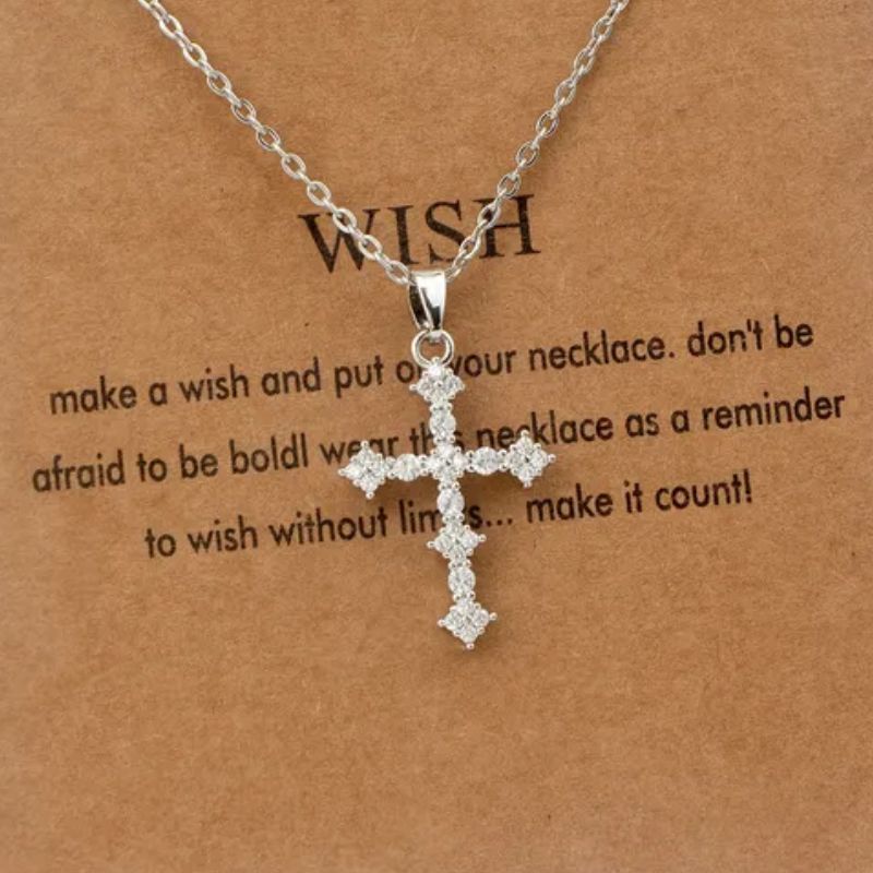 18K Gold Plated Rhinestone Cross Necklace | Gold or Silver