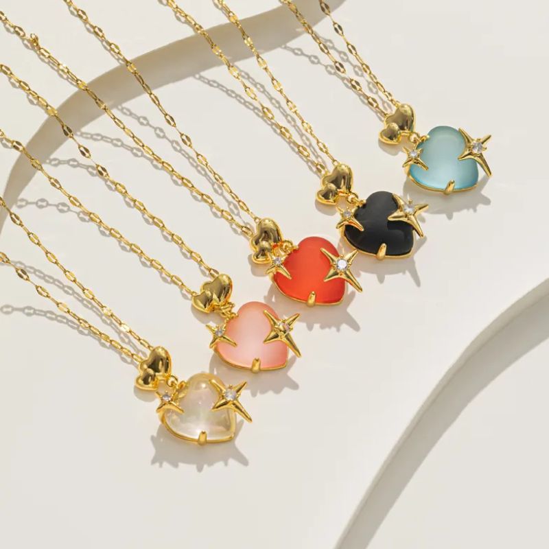 18K Gold Plated Heart with Stars Necklace | 4 Colors