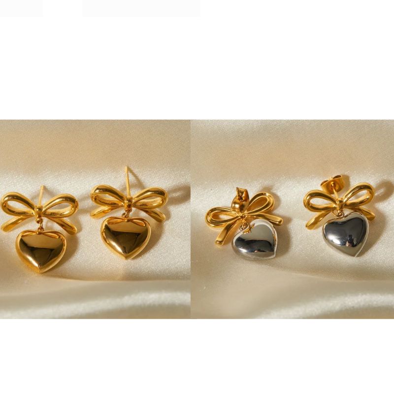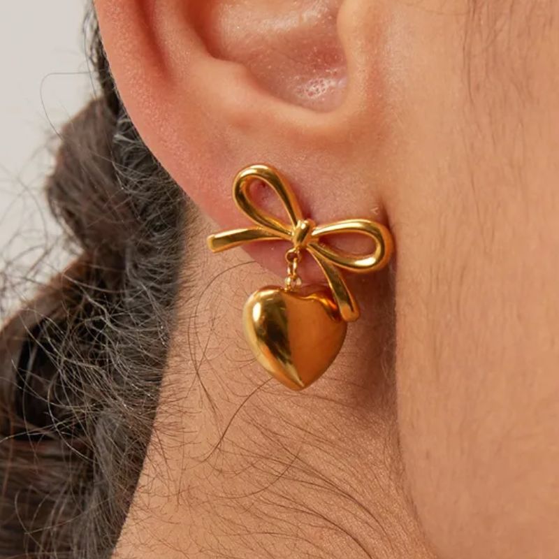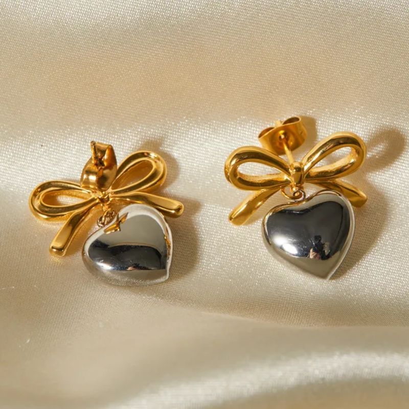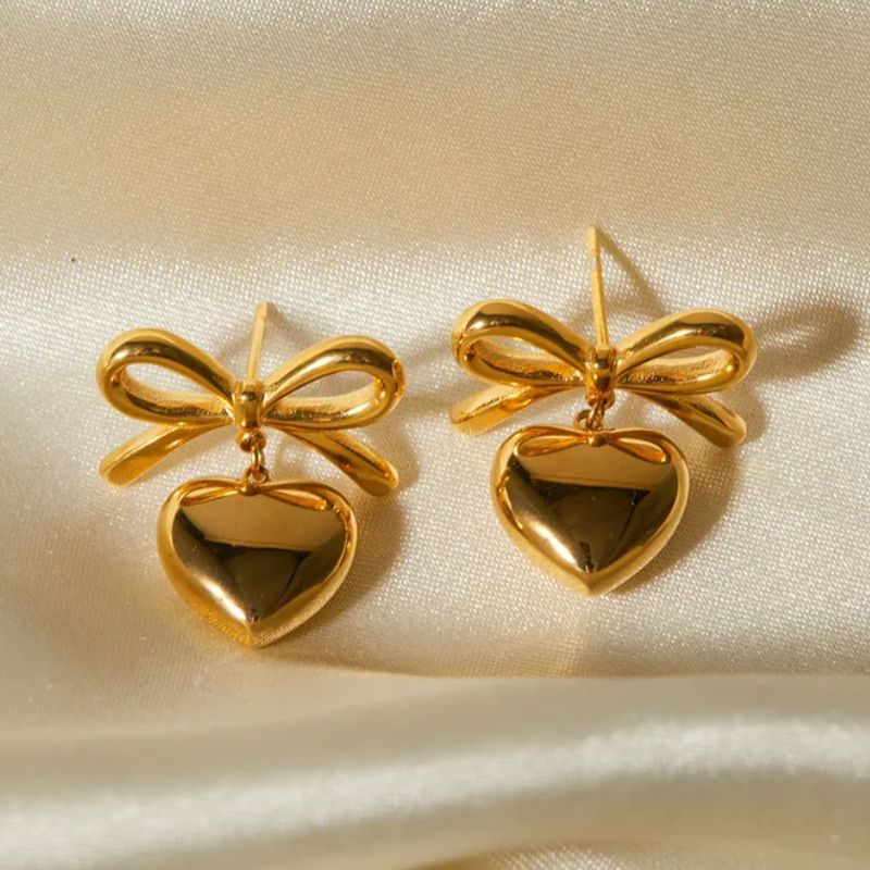 18K Gold Plated Bow & Heart Earrings | Gold or Silver - Silver is backordered and will ship as soon as it is back in stock.