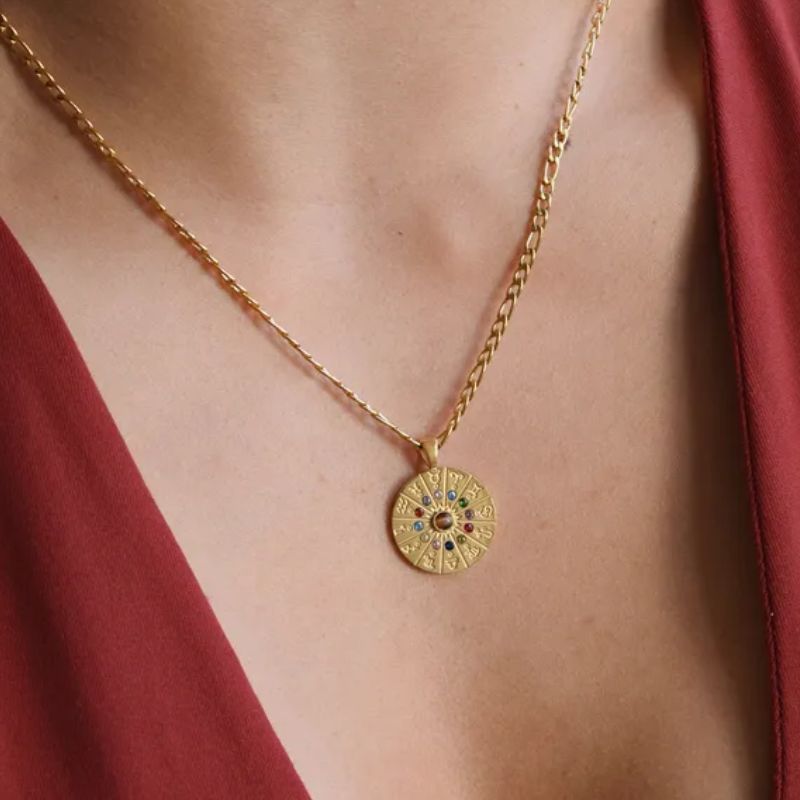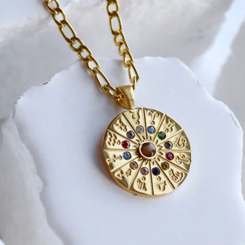 18K Gold Plated Constellation Zircon Pendant Stainless Steel Base Necklace