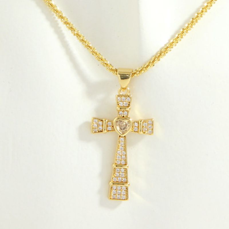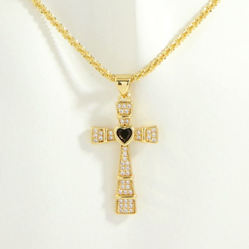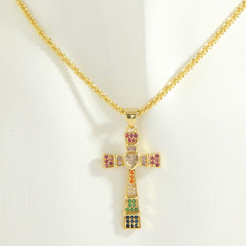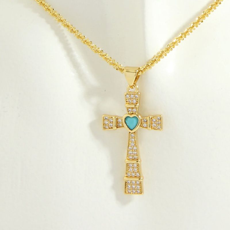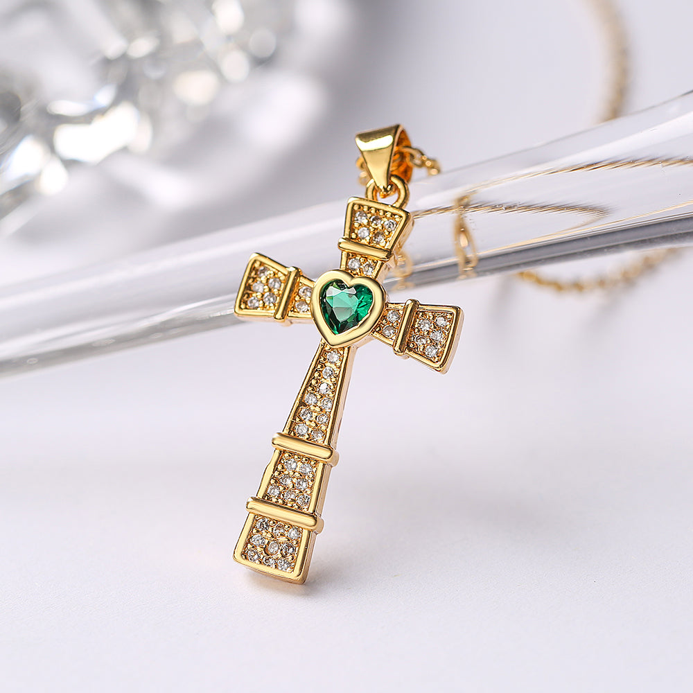 18K Gold Plated Cross Necklace with Central Heart | 5 Options - Green is backordered and will ship as soon as it is back in stock.