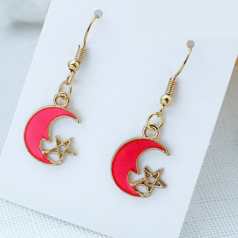 Crescent Moon & Star Earrings | 2 Colors - Blue is backordered and will ship as soon as it is back in stock.