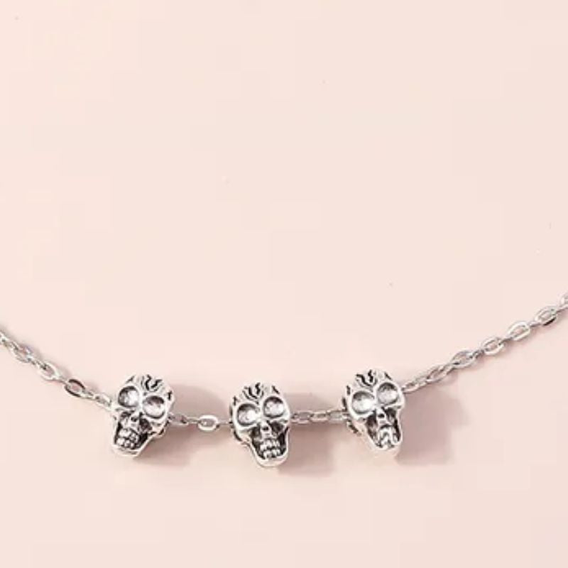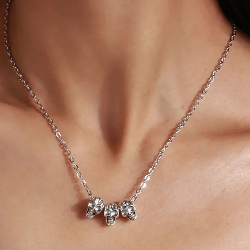 Halloween Silver Triple Skulls Necklace - Silver is backordered and will ship as soon as it is back in stock.