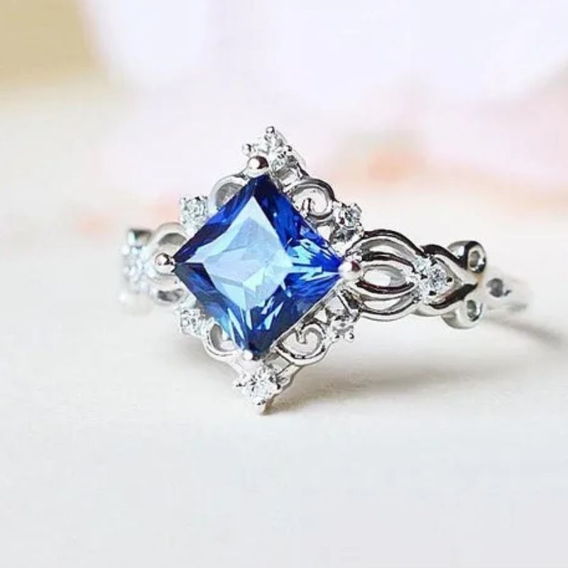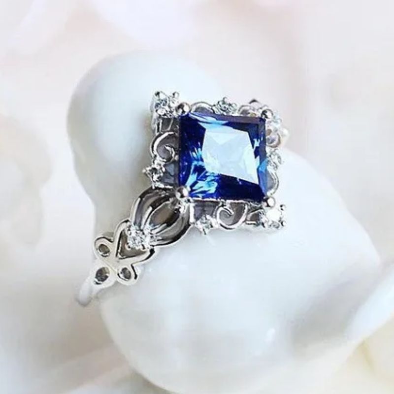 Ornate Silver Band Ring with Blue Stone | 4 Sizes - Silver / 8 is backordered and will ship as soon as it is back in stock.