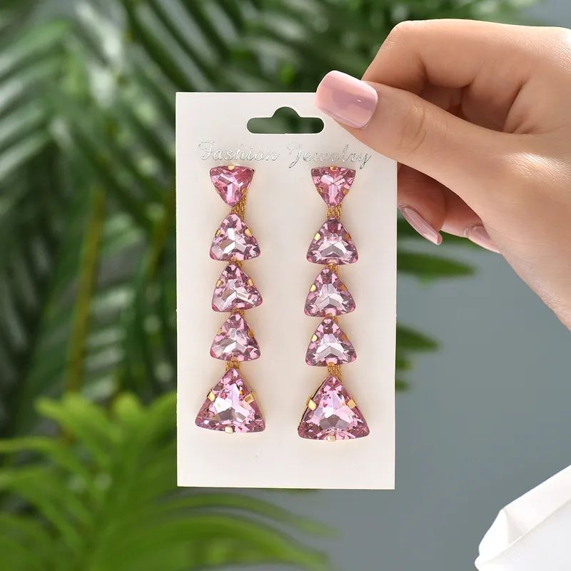 Rhinestone Triangle Drop Earrings | Clear or Pink - CLEAR is backordered and will ship as soon as it is back in stock.
