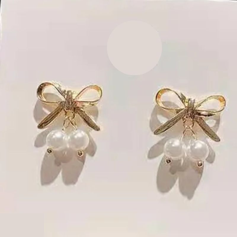 Coquette Gold Bow Outline with Pearl Tails Earrings