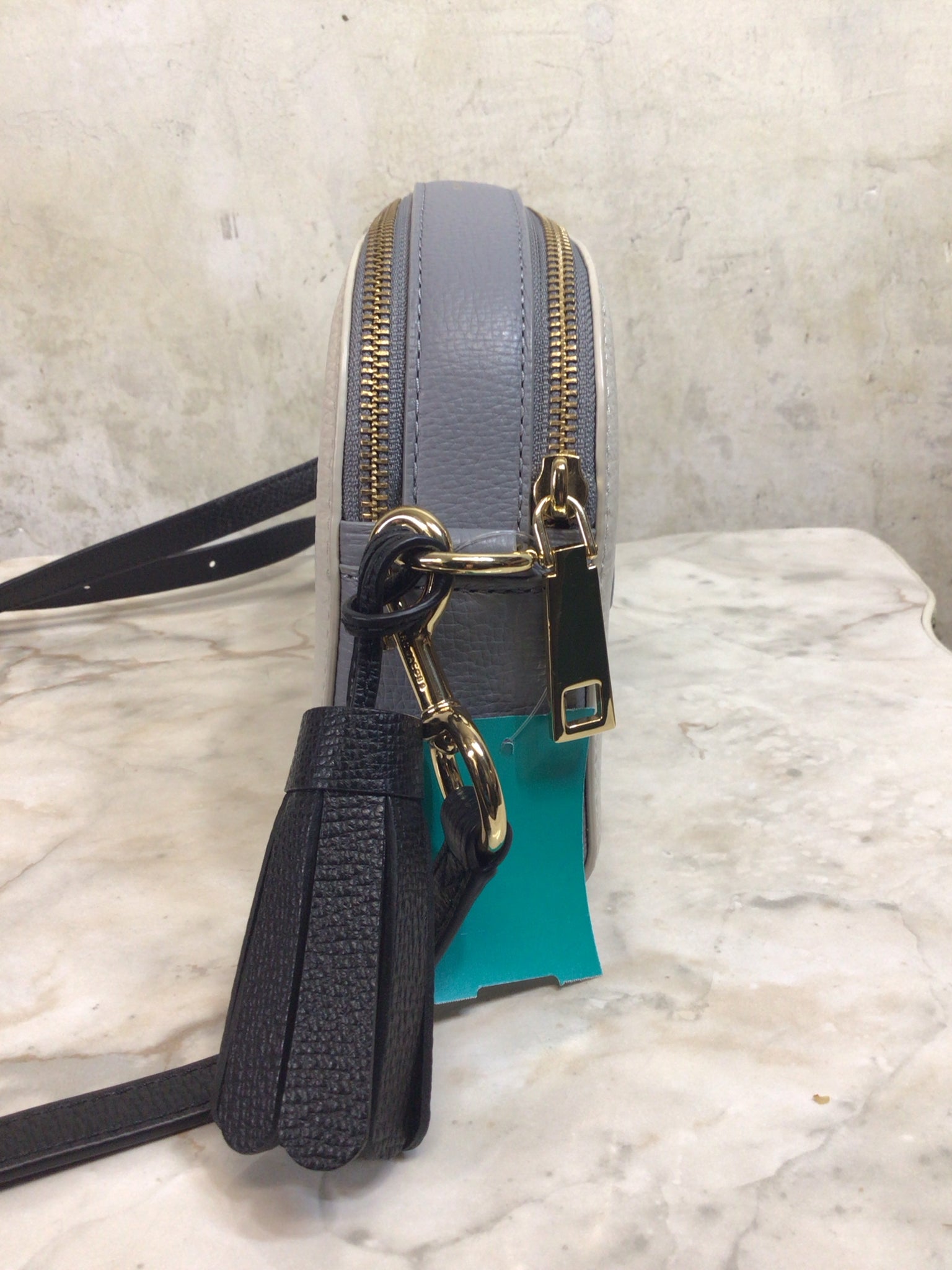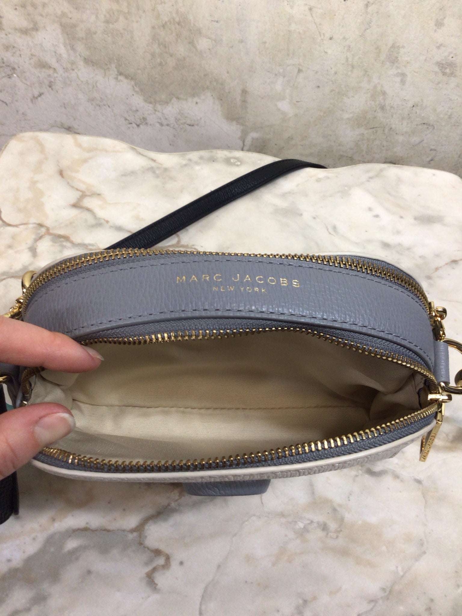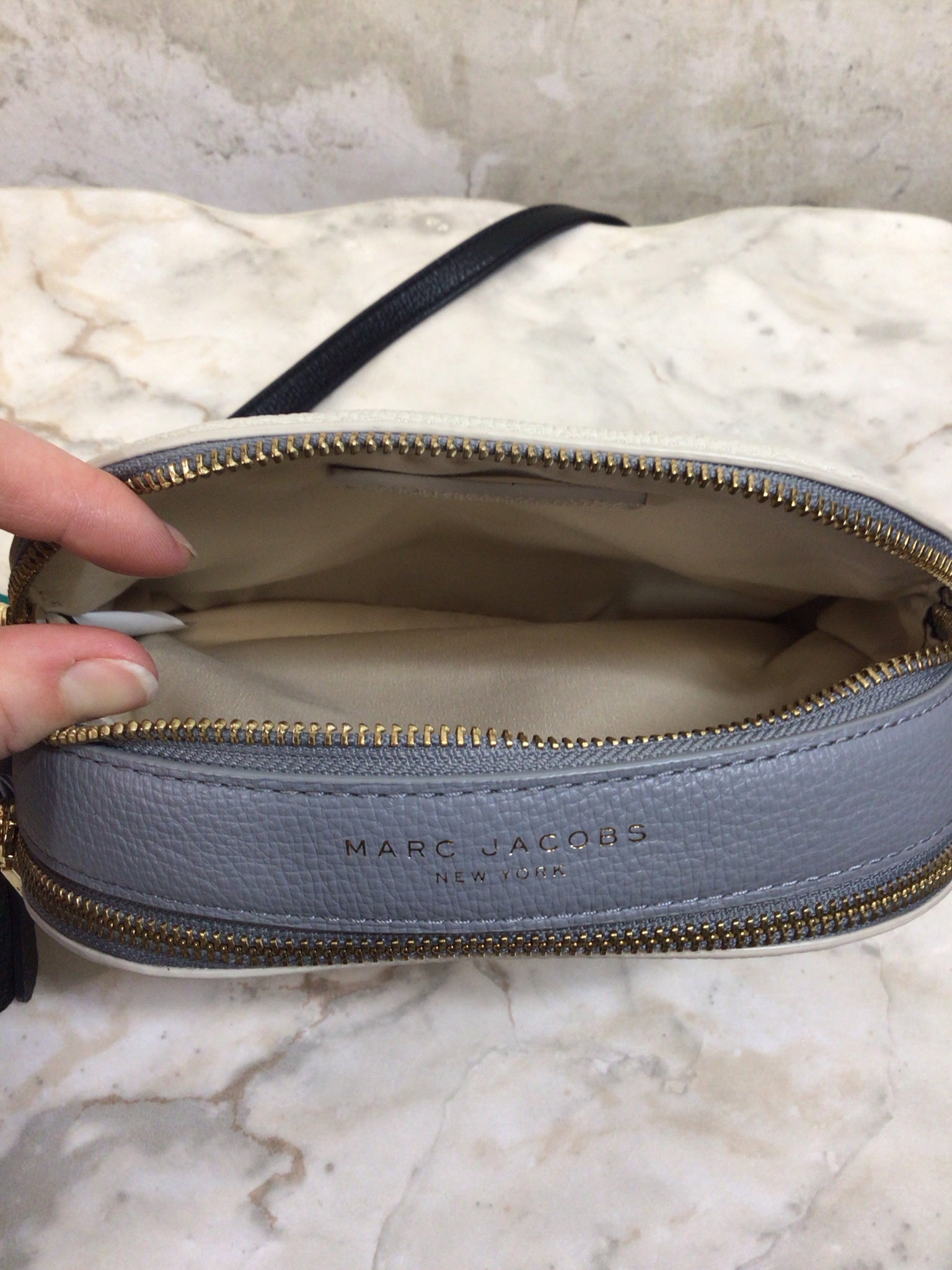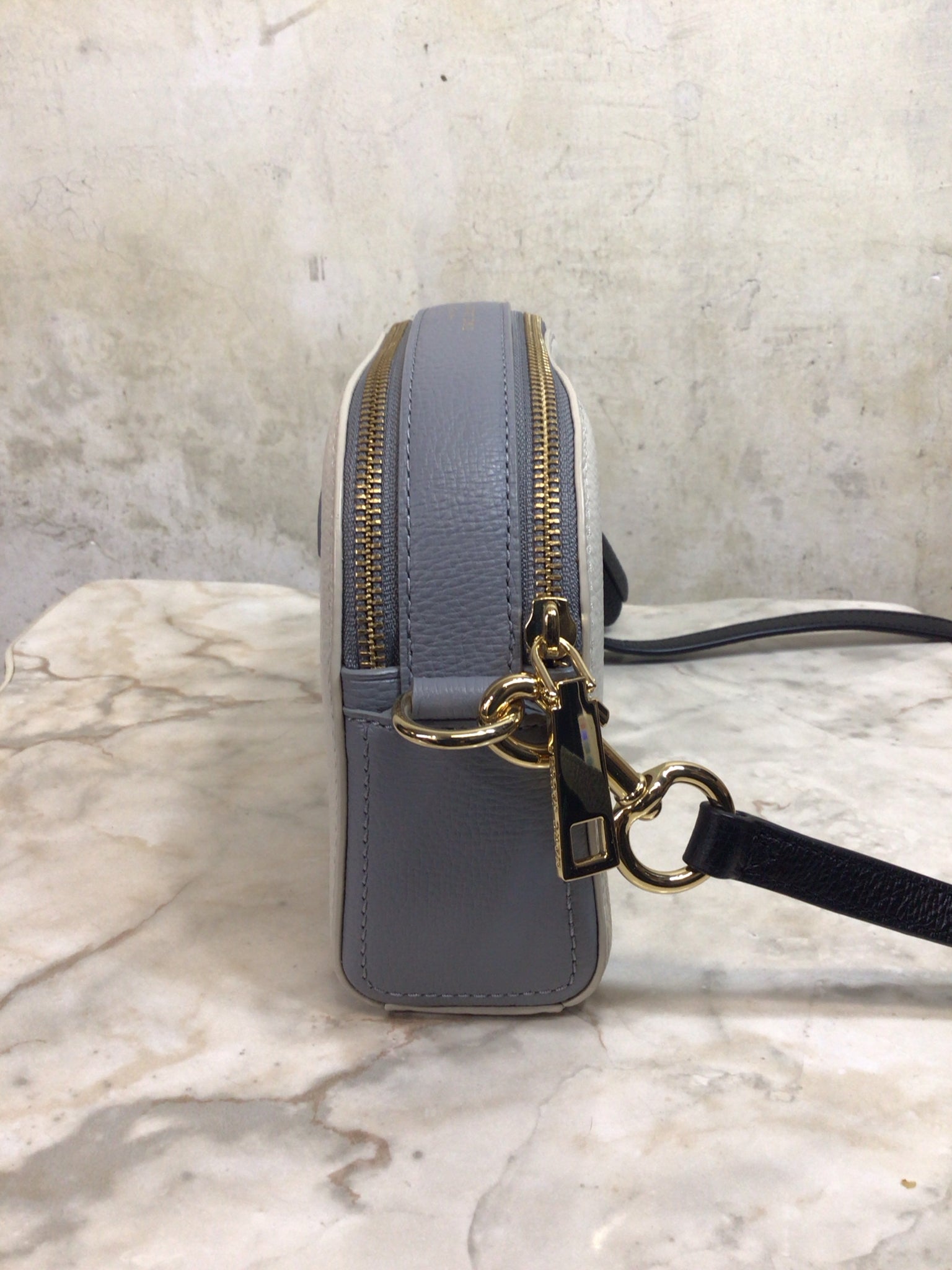 MARC JACOBS CREAM/GREY/BLACK SHUTTER CROSSBODY LEATHER Purse - CREAM/GREY/BLACK is backordered and will ship as soon as it is back in stock.