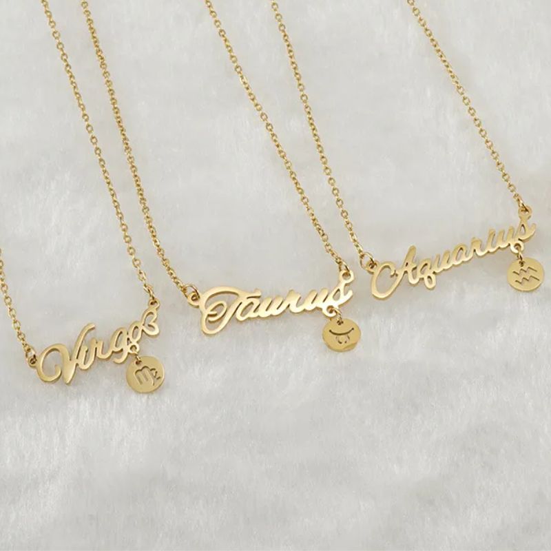 18K Gold Plated Zodiac Script Necklace | All Signs