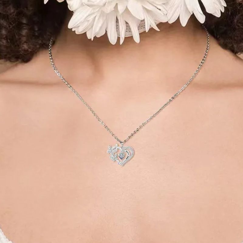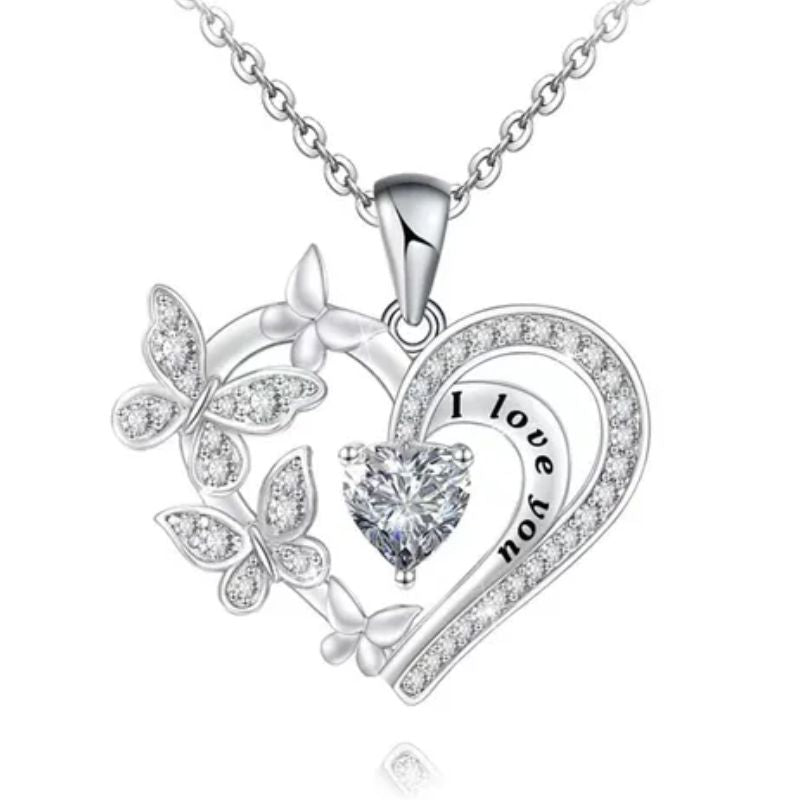 Heart Necklace with Butterflies & Love Script | 3 Colors - Pink is backordered and will ship as soon as it is back in stock.