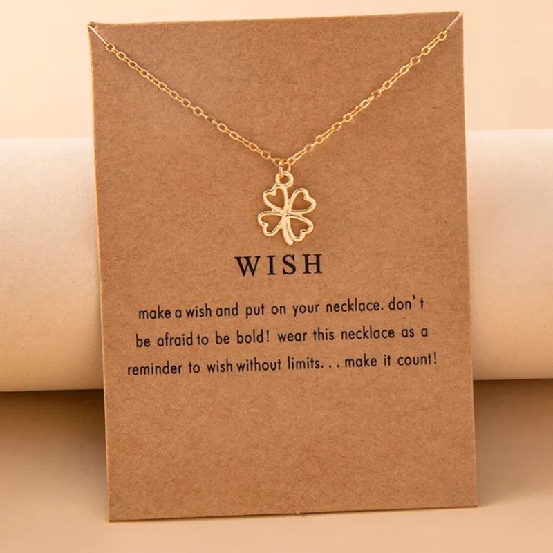 St Patrick's Day "Make A Wish" Four Leaf Clover Necklace - Gold is backordered and will ship as soon as it is back in stock.