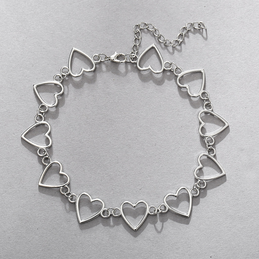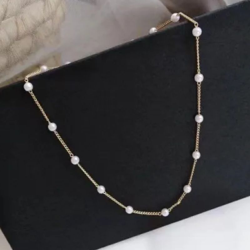 Gold Rhinestone & Pearl Necklace with Heart Inlay