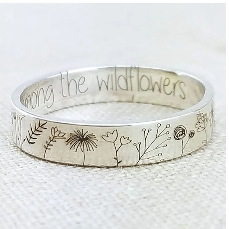 Etched "Among the Wildflowers" Ring | 5 Sizes - Silver / 6 is backordered and will ship as soon as it is back in stock.