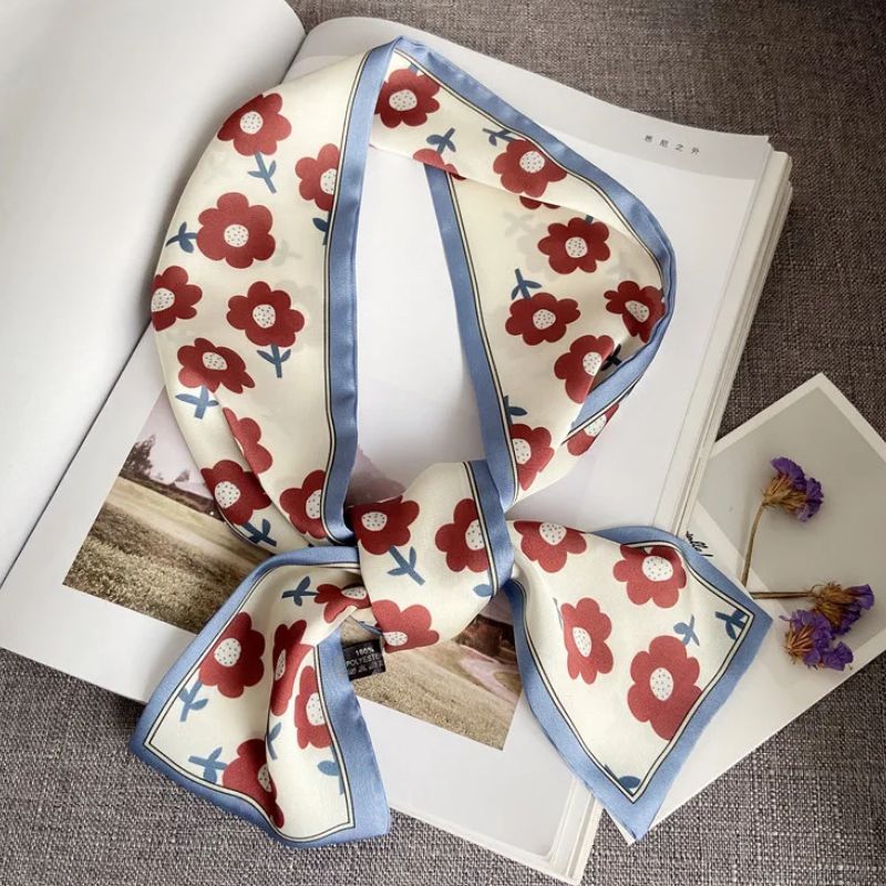 BULGARI ORANGE PRINT 100% SILK Skinny + Fashion Scarf