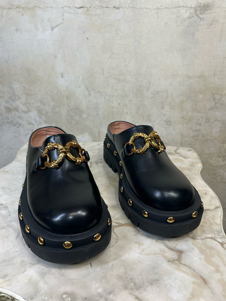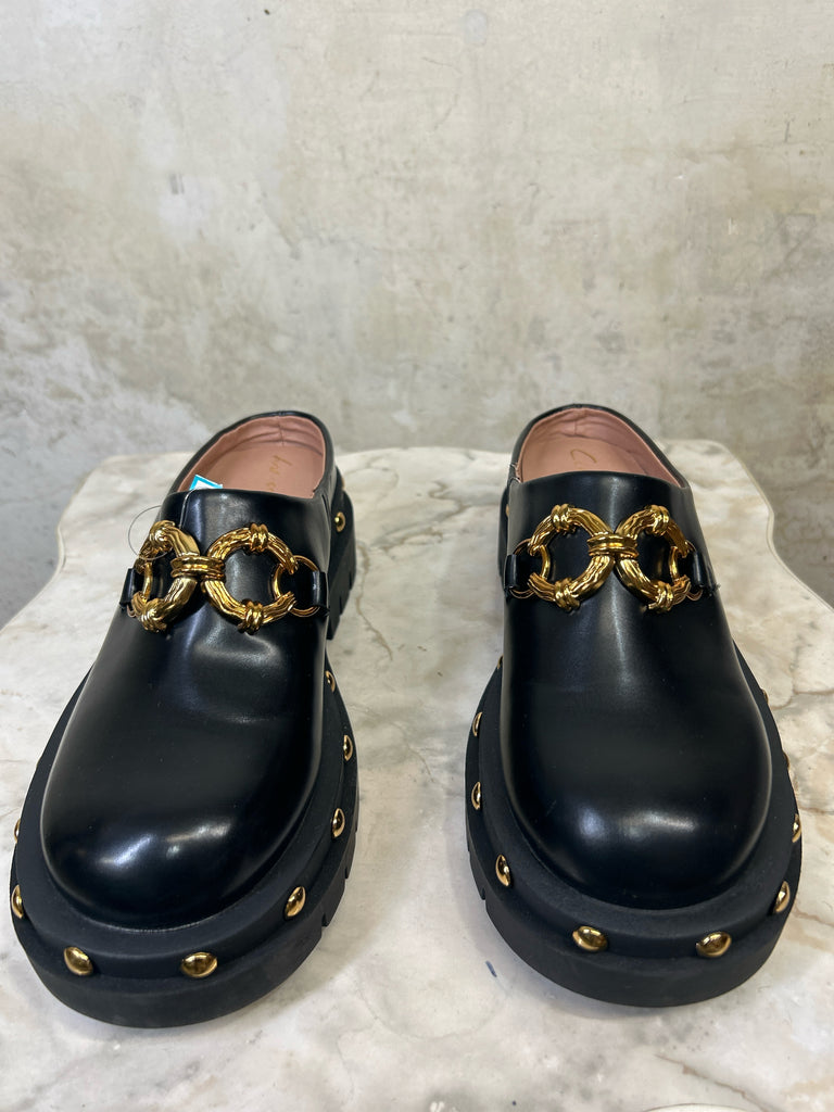 Shoe Size 8 CIRCUS by SAM EDELMAN BLACK/GOLD ANNIE CLOG Flats