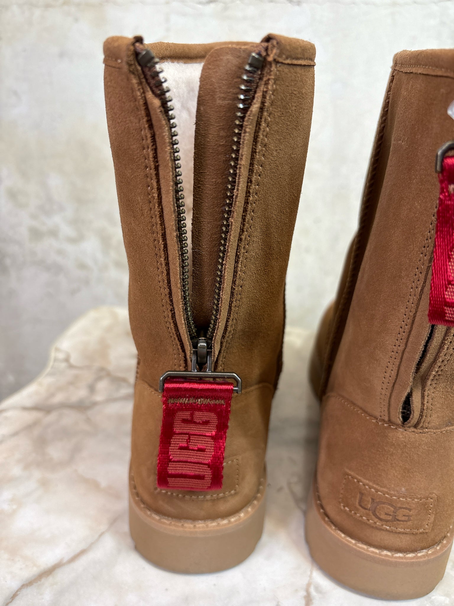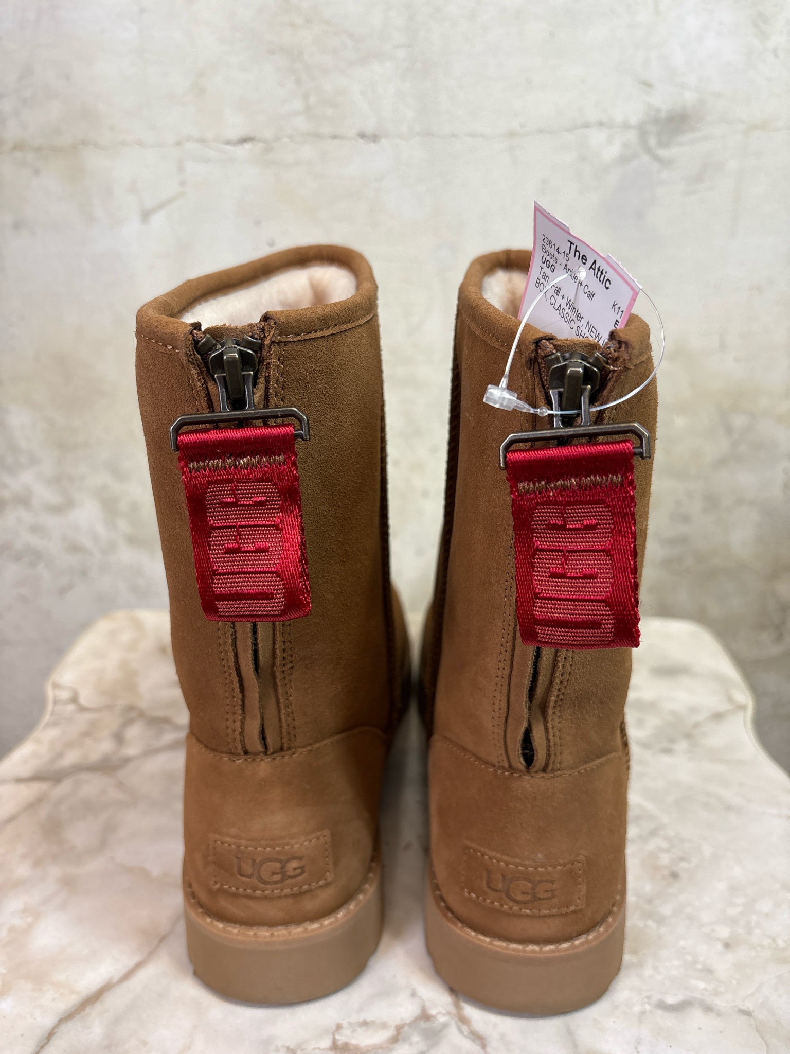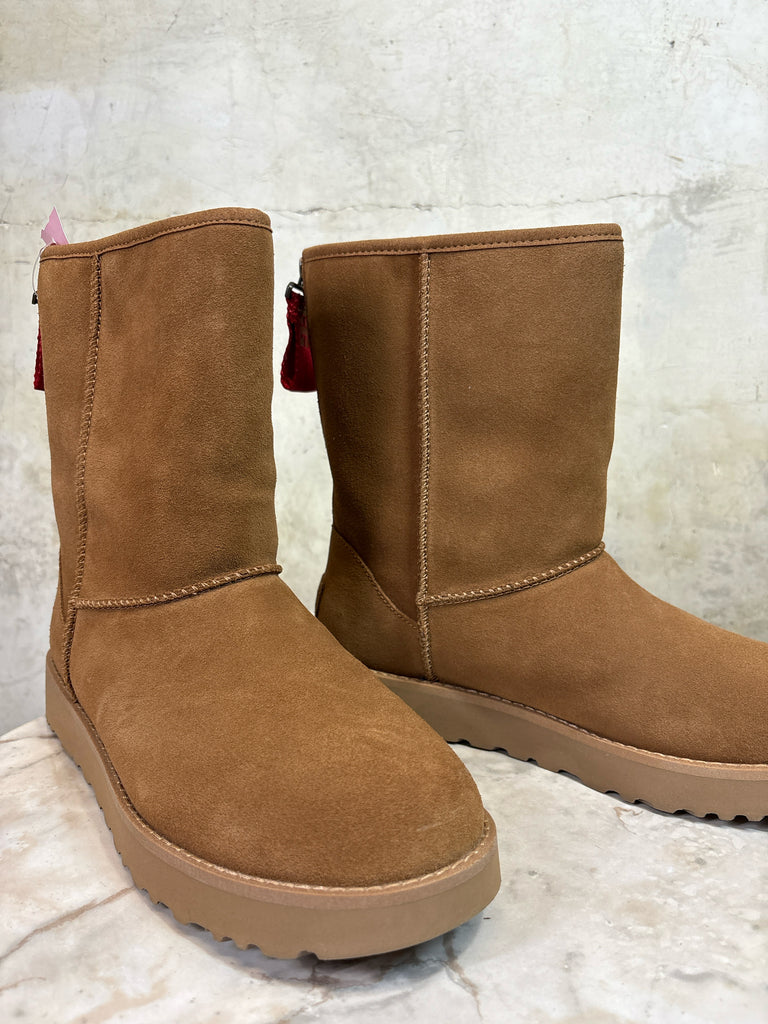 Shoe Size 9 UGG Tan NEW IN BOX CLASSIC SHORT LOGO ZIP Boots - Ankle + Calf