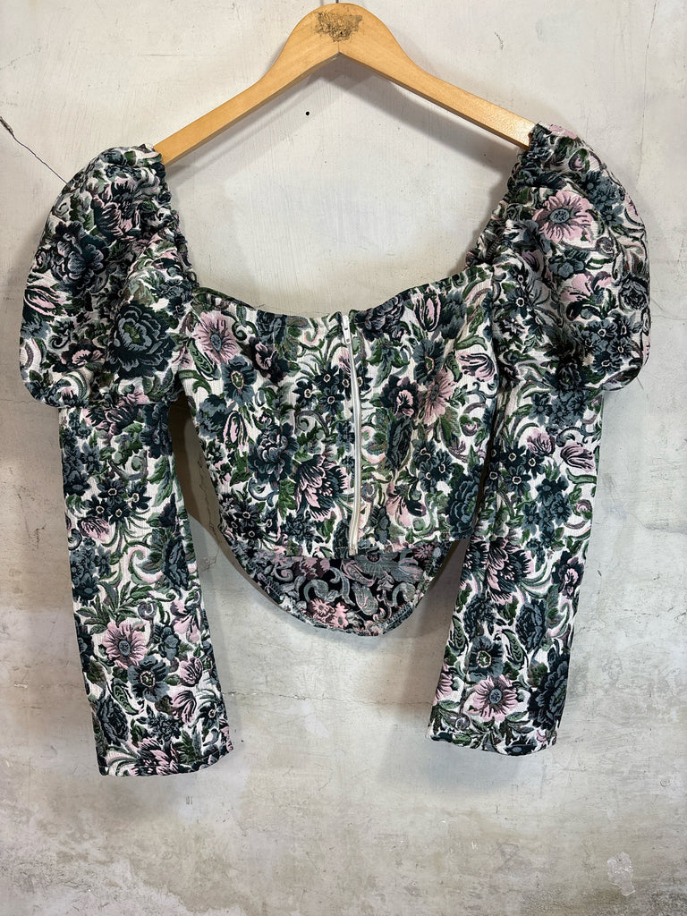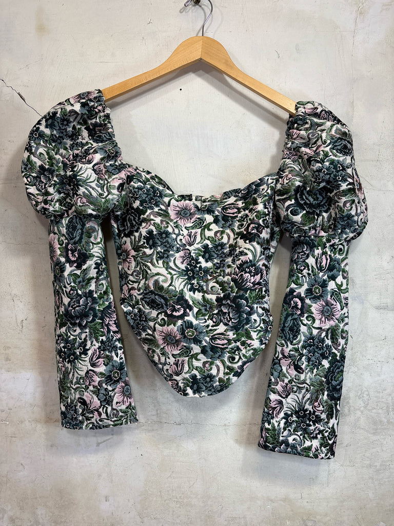 Size XXS/XS OLIVIA the LABEL CREAM/GREEN PRINT Retails $300+ Long Sleeve Shirt