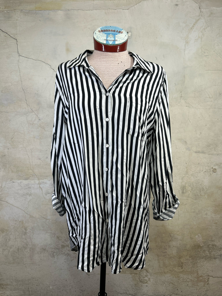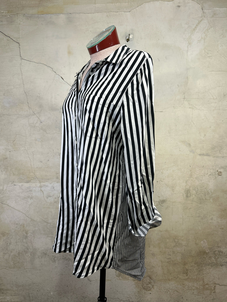 Size L JANE + DELANCY B&W STRIPES Long Sleeve Shirt