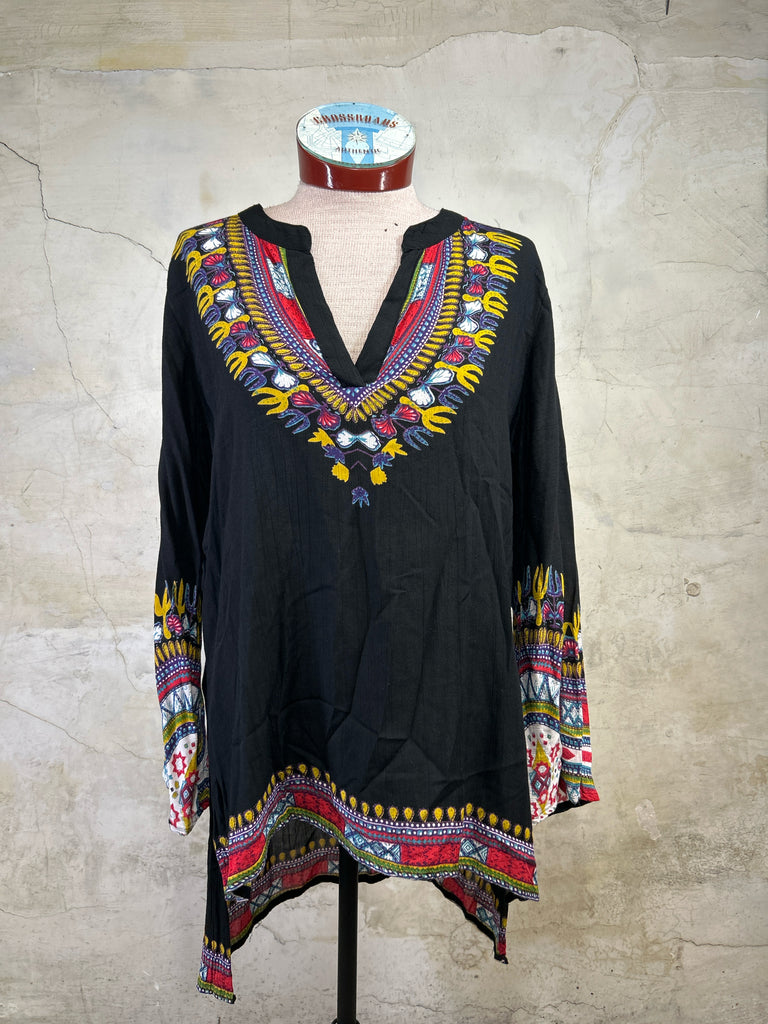 Size M LOLA P. BLACK/MULTI Long Sleeve Shirt