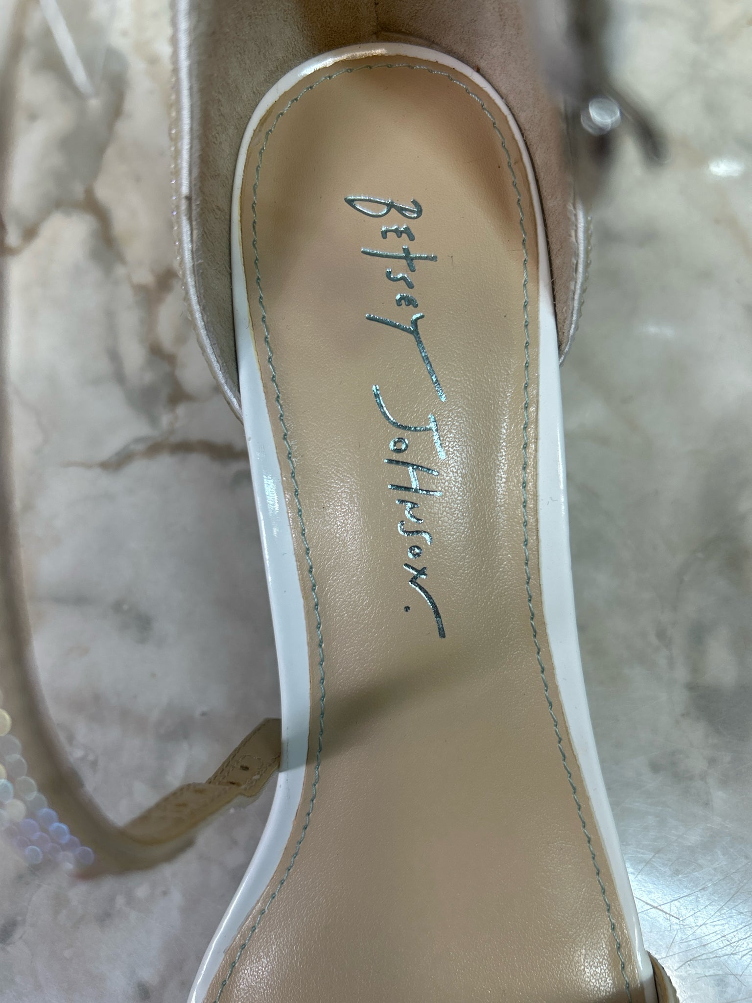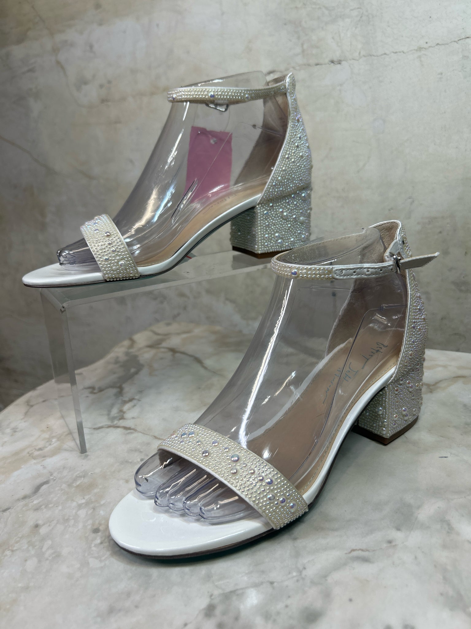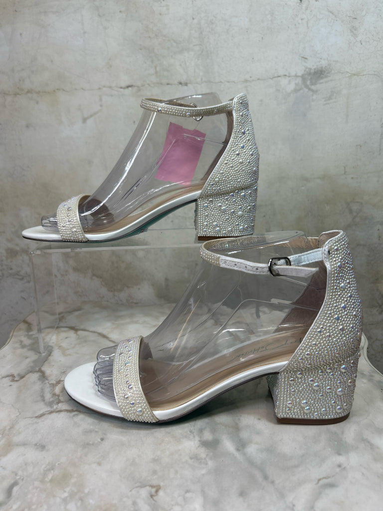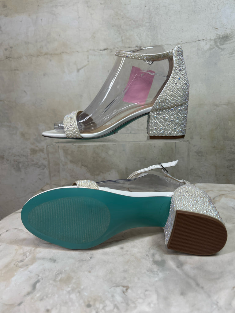 Shoe Size 7.5 BETSEY JOHNSON WHITE/PEARLESCENT MARI BLOCK HEEL Heels + Wedges - WHITE/PEARLESCENT / 7.5 is backordered and will ship as soon as it is back in stock.