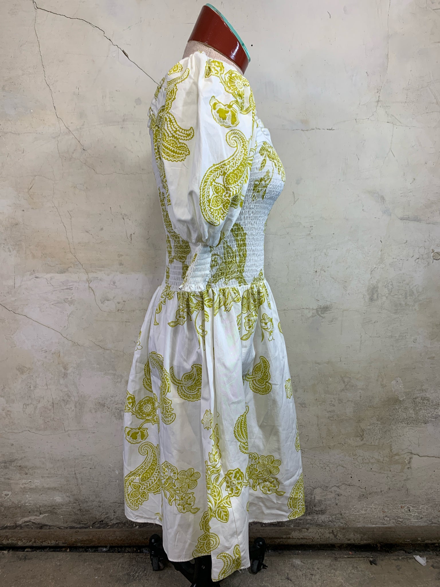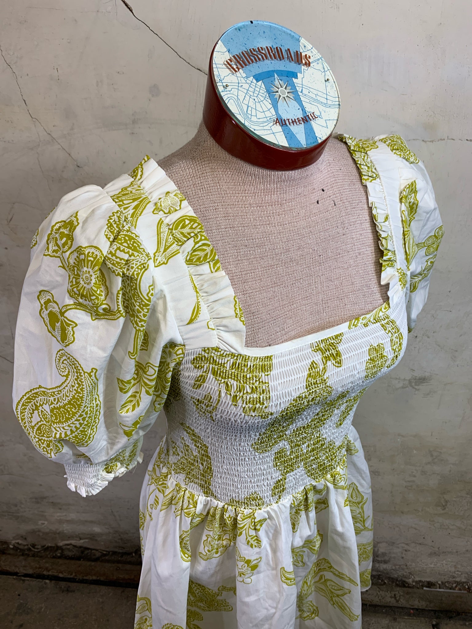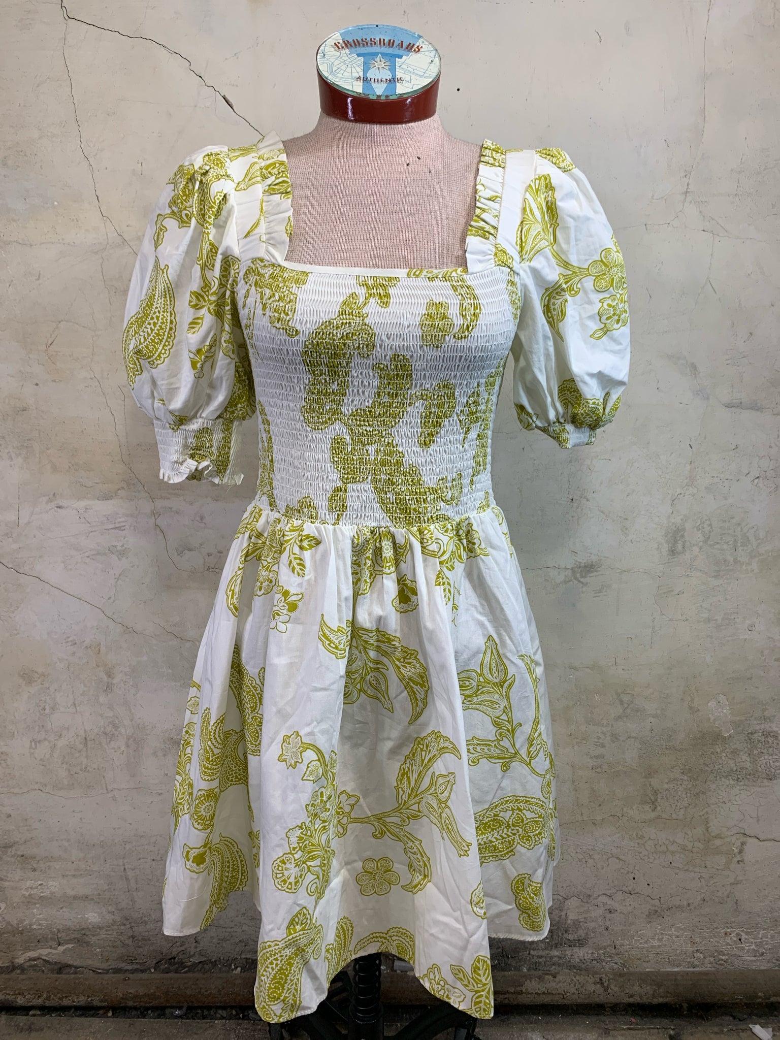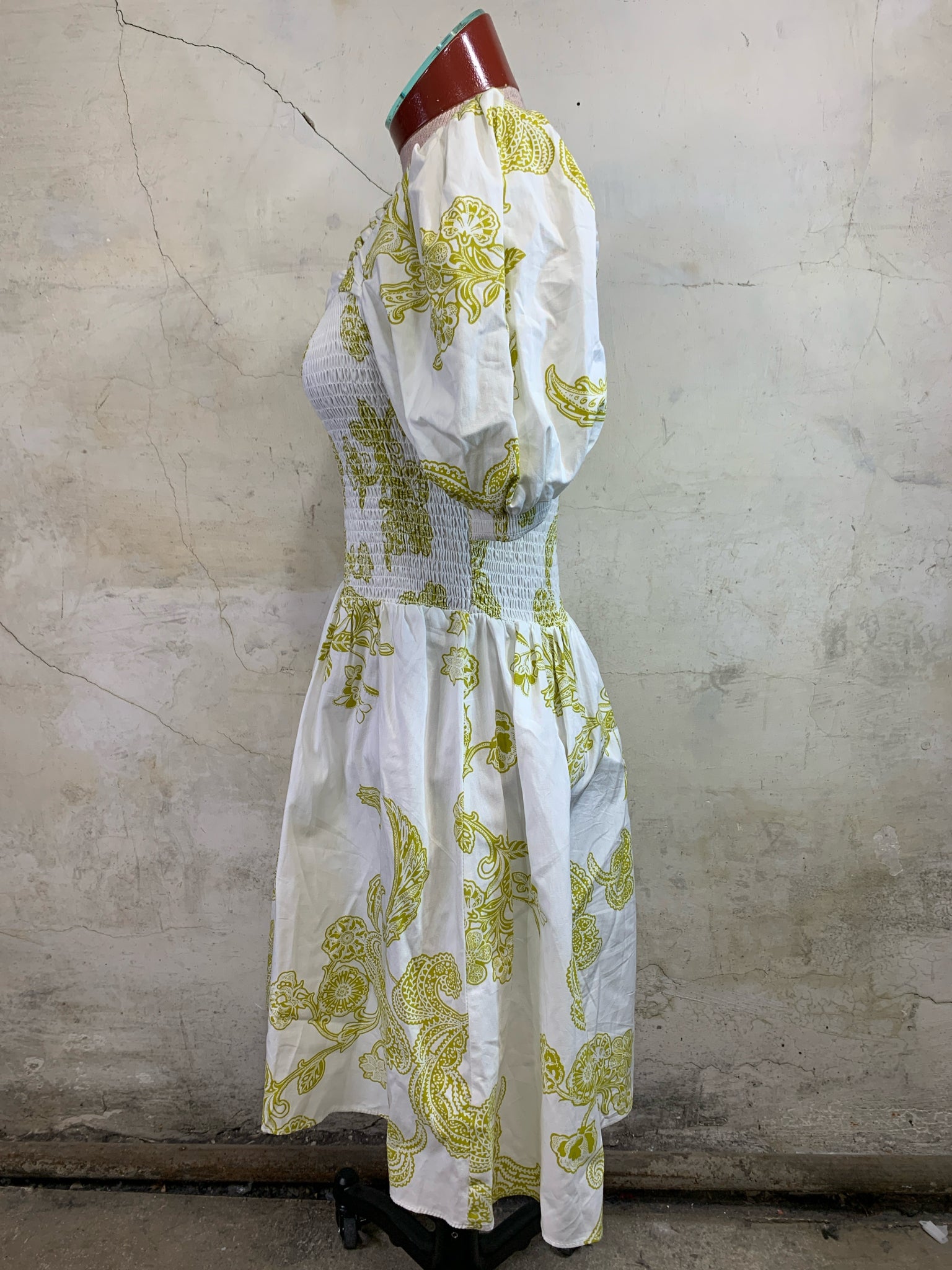 Size S 1. STATE WHITE/GREEN PRINT Dress - WHITE/GREEN PRINT / S is backordered and will ship as soon as it is back in stock.