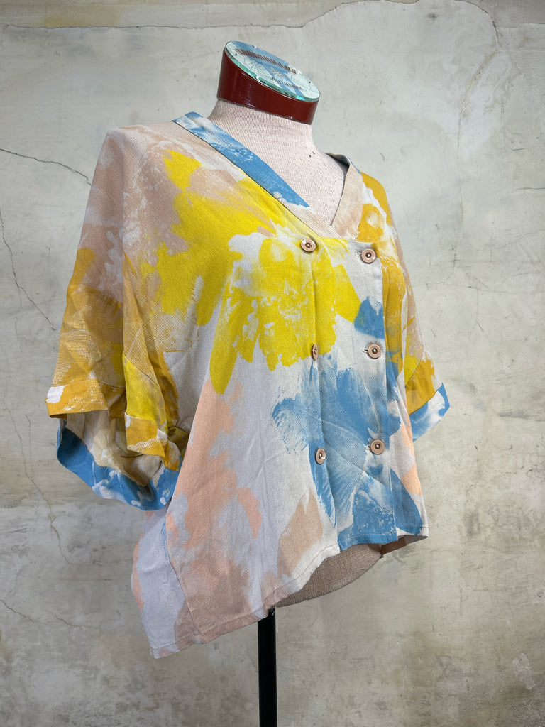 Size S RODEBJER Grey Print Retails $300+ Short Sleeve Shirt