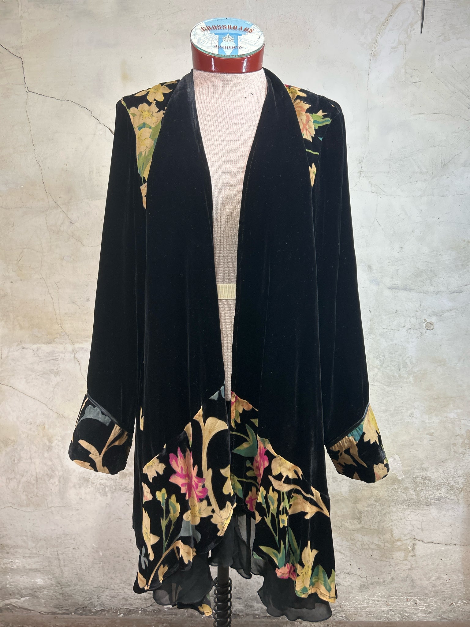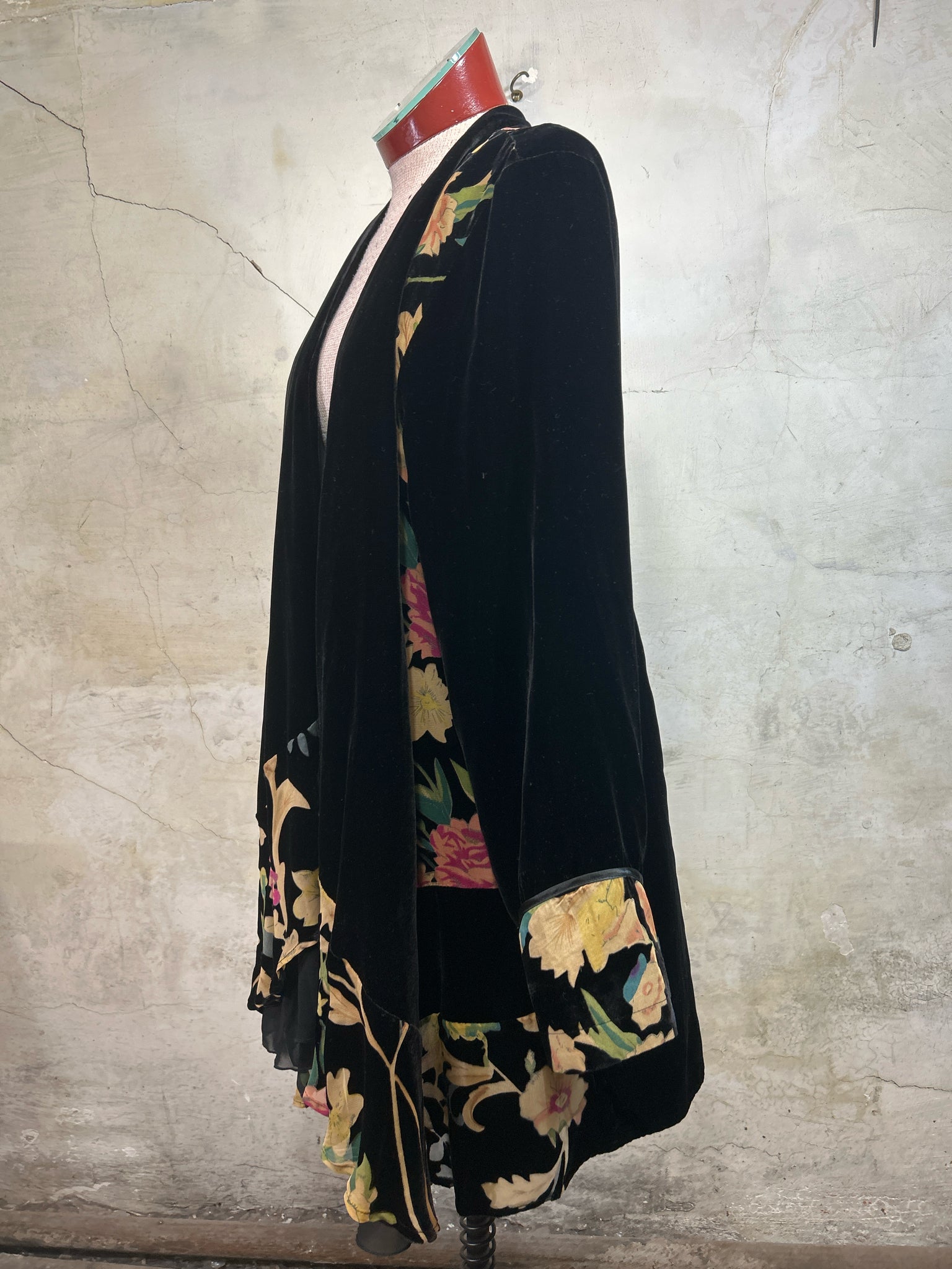 Size L SOFT SURROUNDINGS BLACK VELVET/FLORAL has pockets! Cardigan
