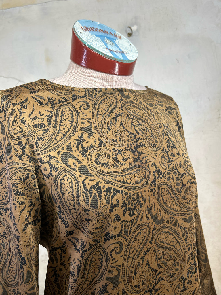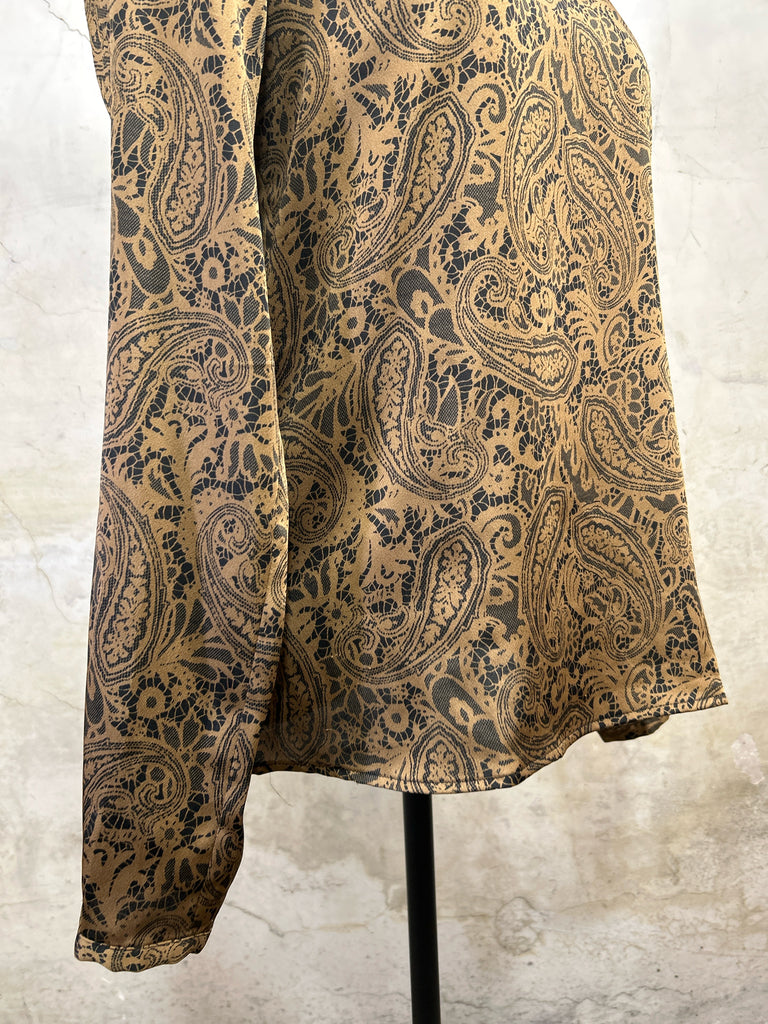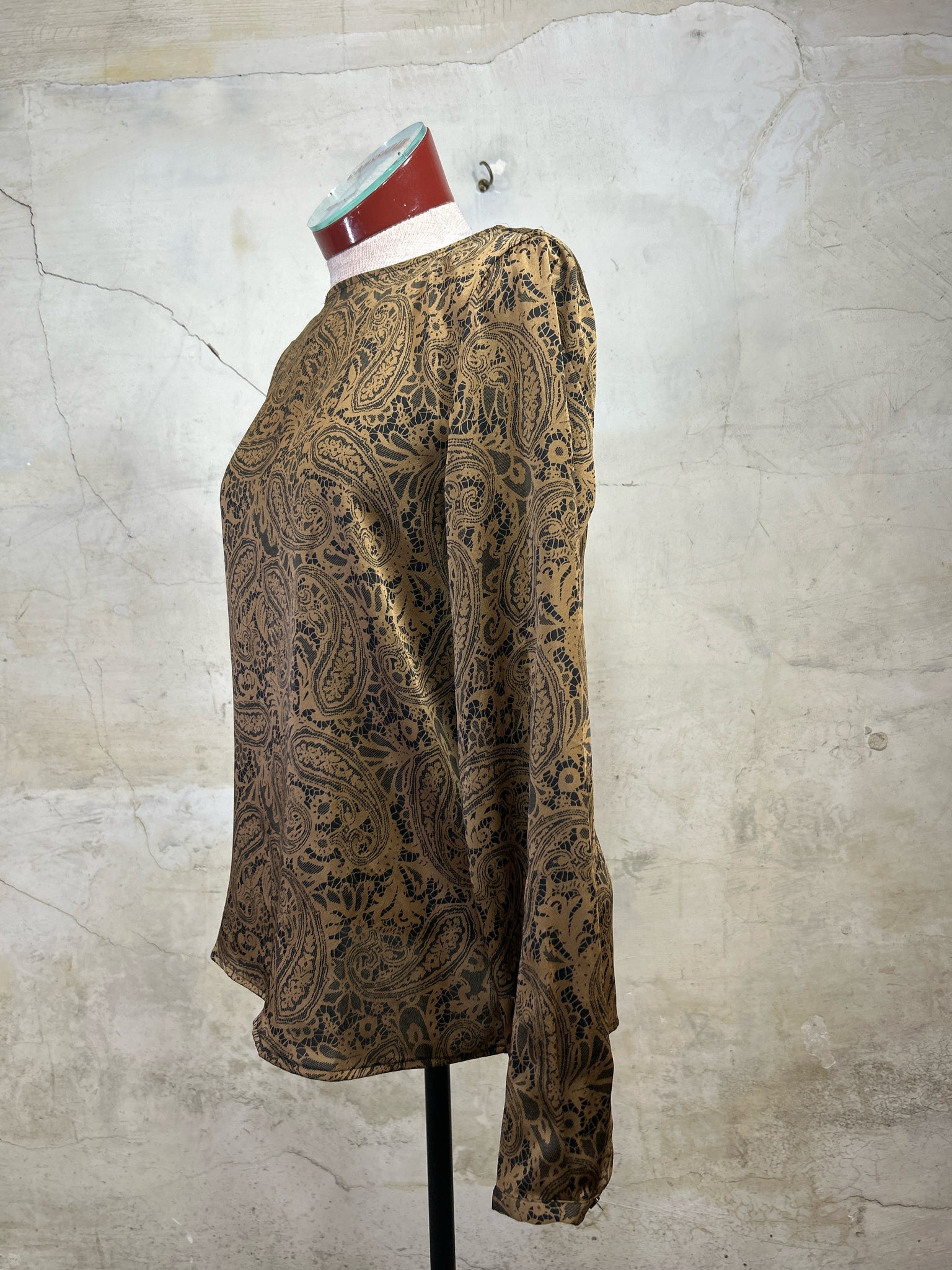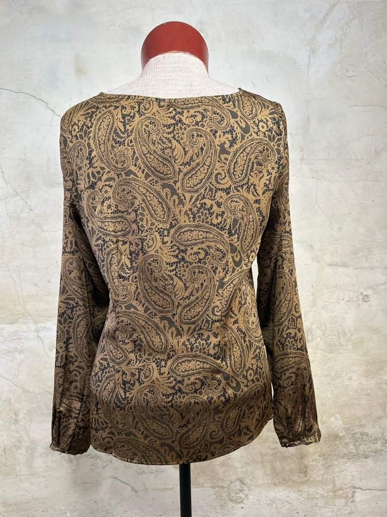 Size S ANN TAYLOR BLACK/BROWN PAISLEY Long Sleeve Shirt