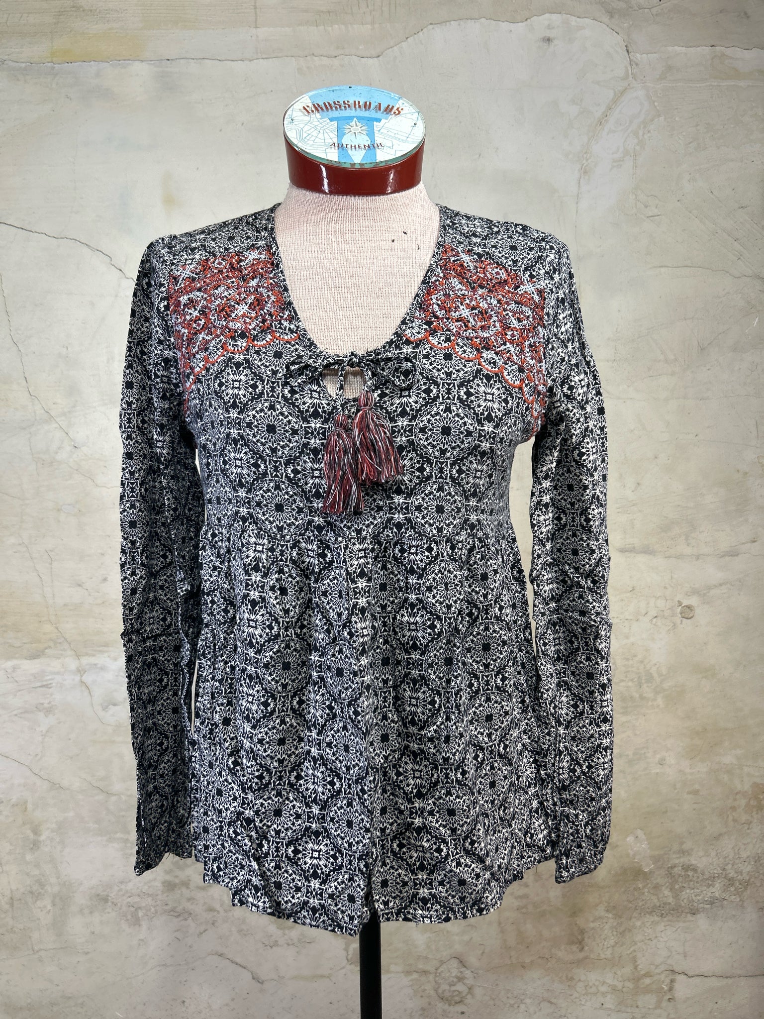 Size XS KNOX ROSE Black Print Long Sleeve Shirt - Black Print / XS is backordered and will ship as soon as it is back in stock.
