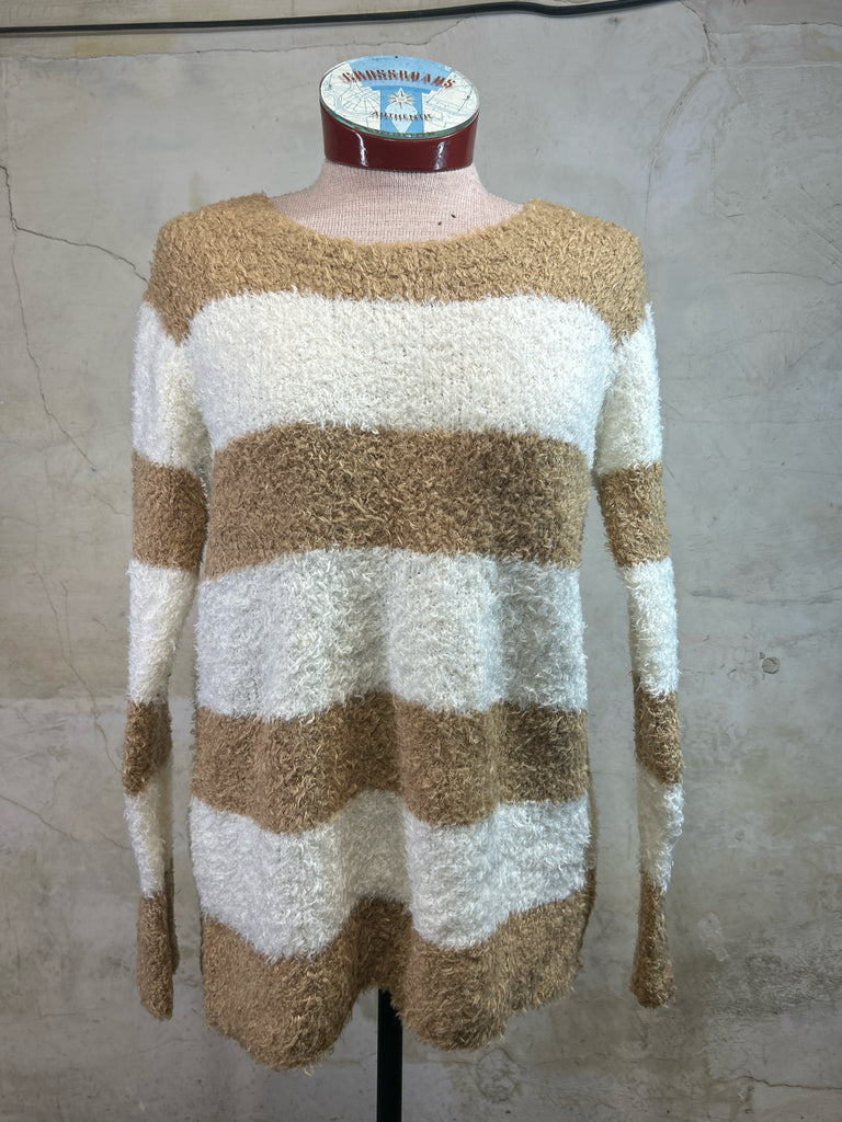 Size XS TALBOTS TAN/CREAM STRIPE Sweater