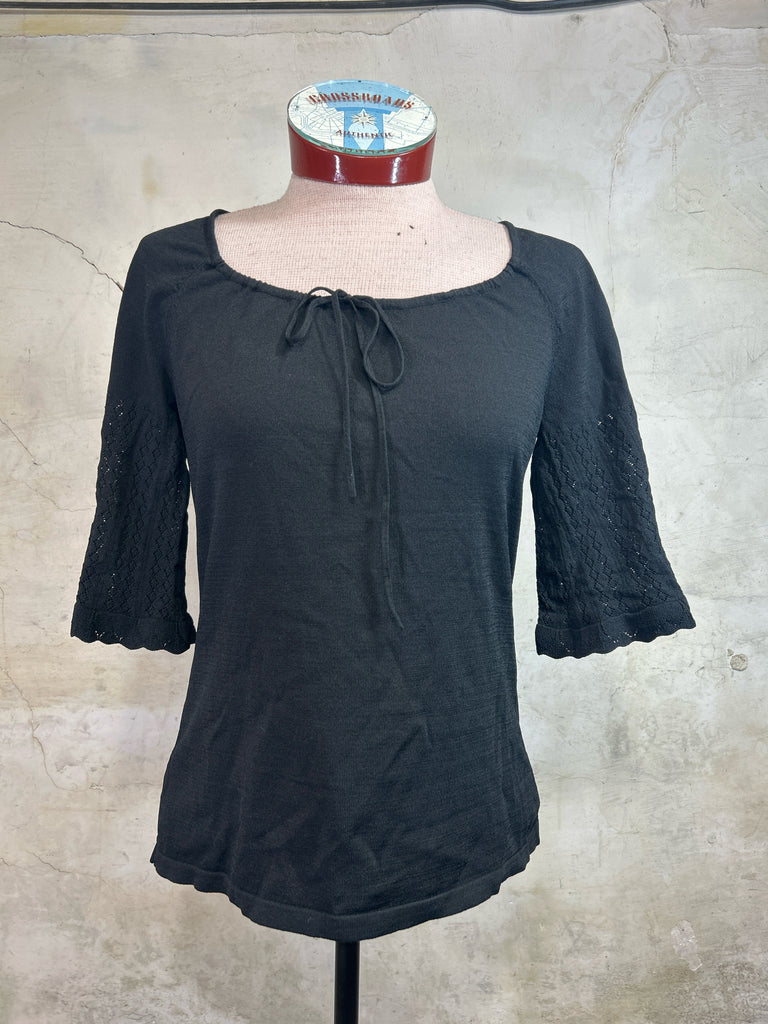 Size M LOFT BLACK KNIT 90s VINTAGE Short Sleeve Shirt