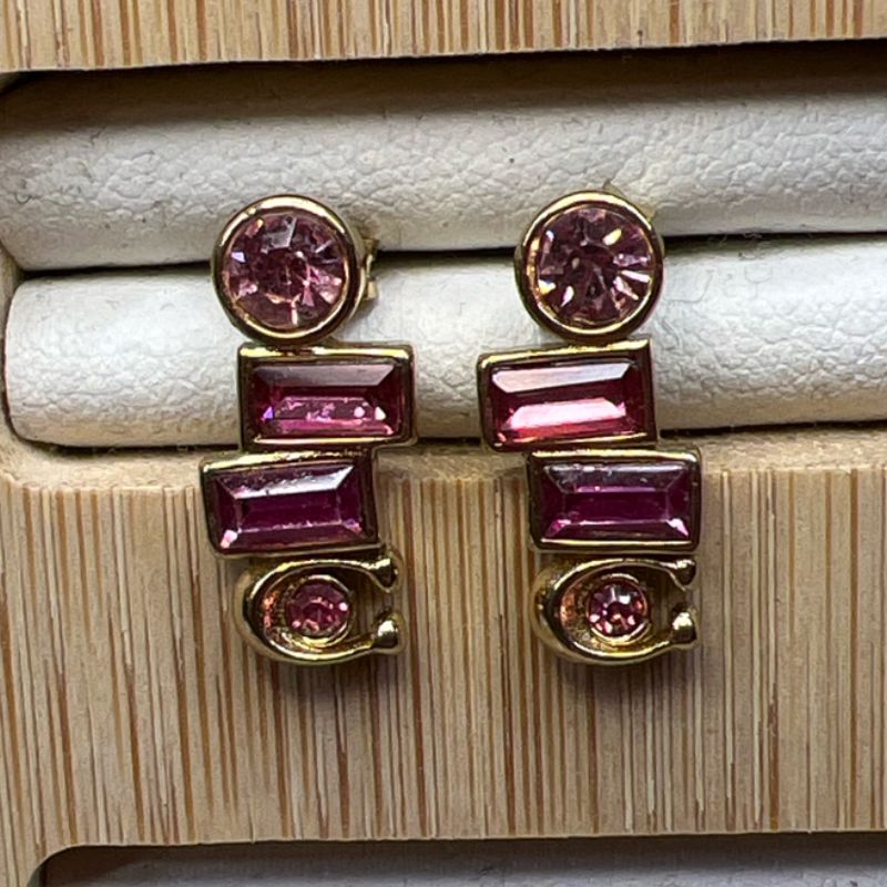COACH GOLD/PINK SIGNATURE JEWEL STUD Earrings